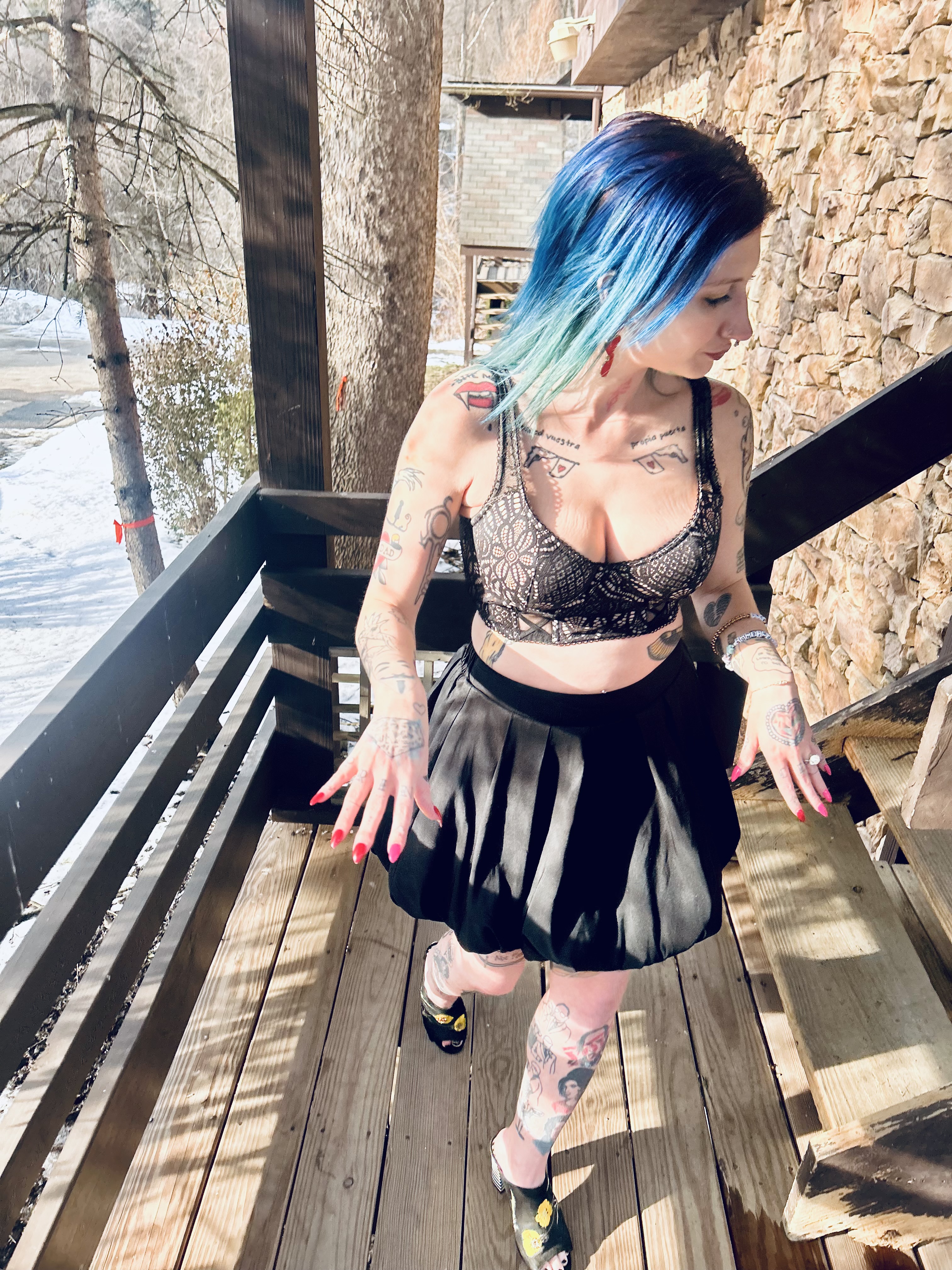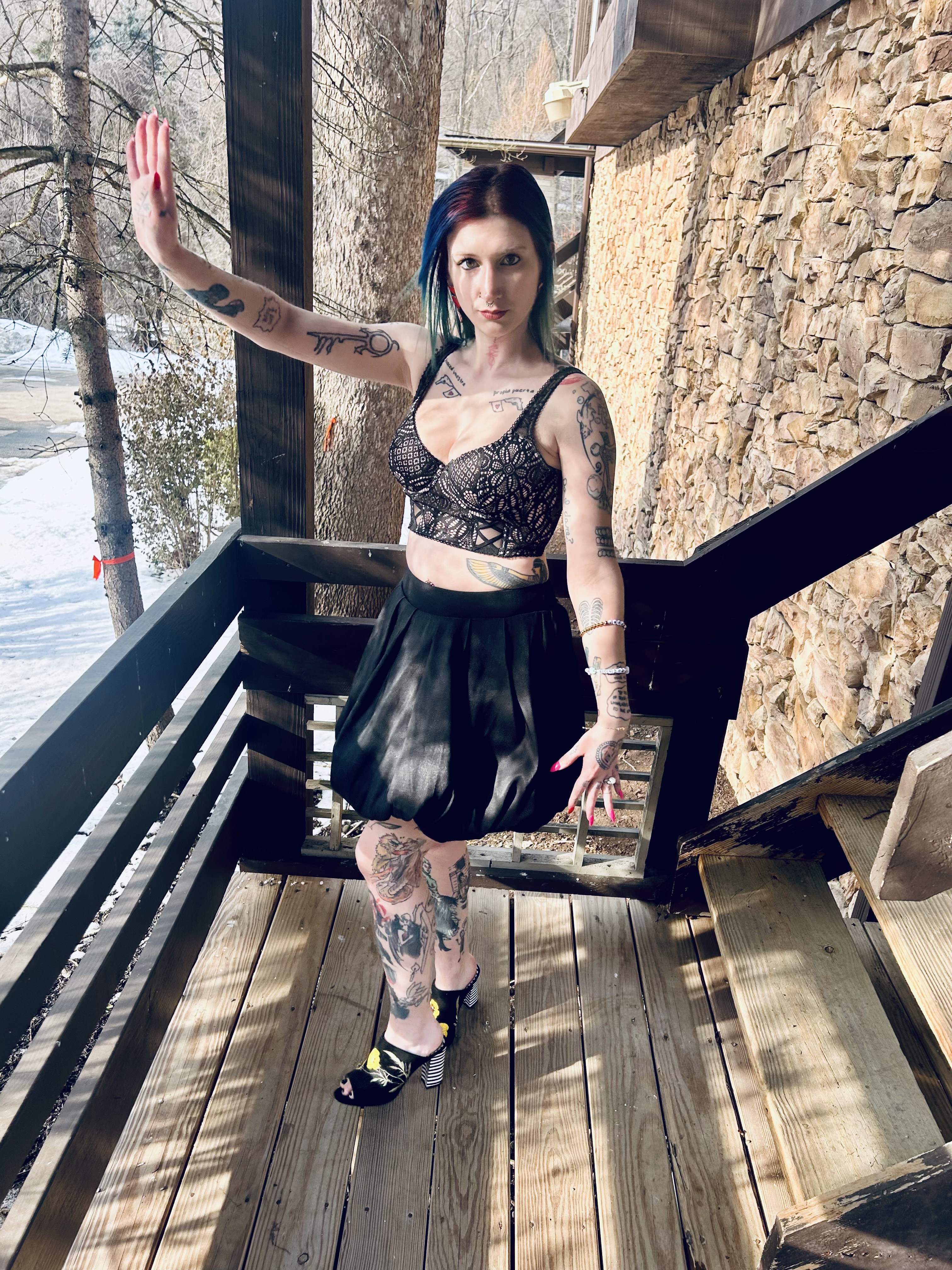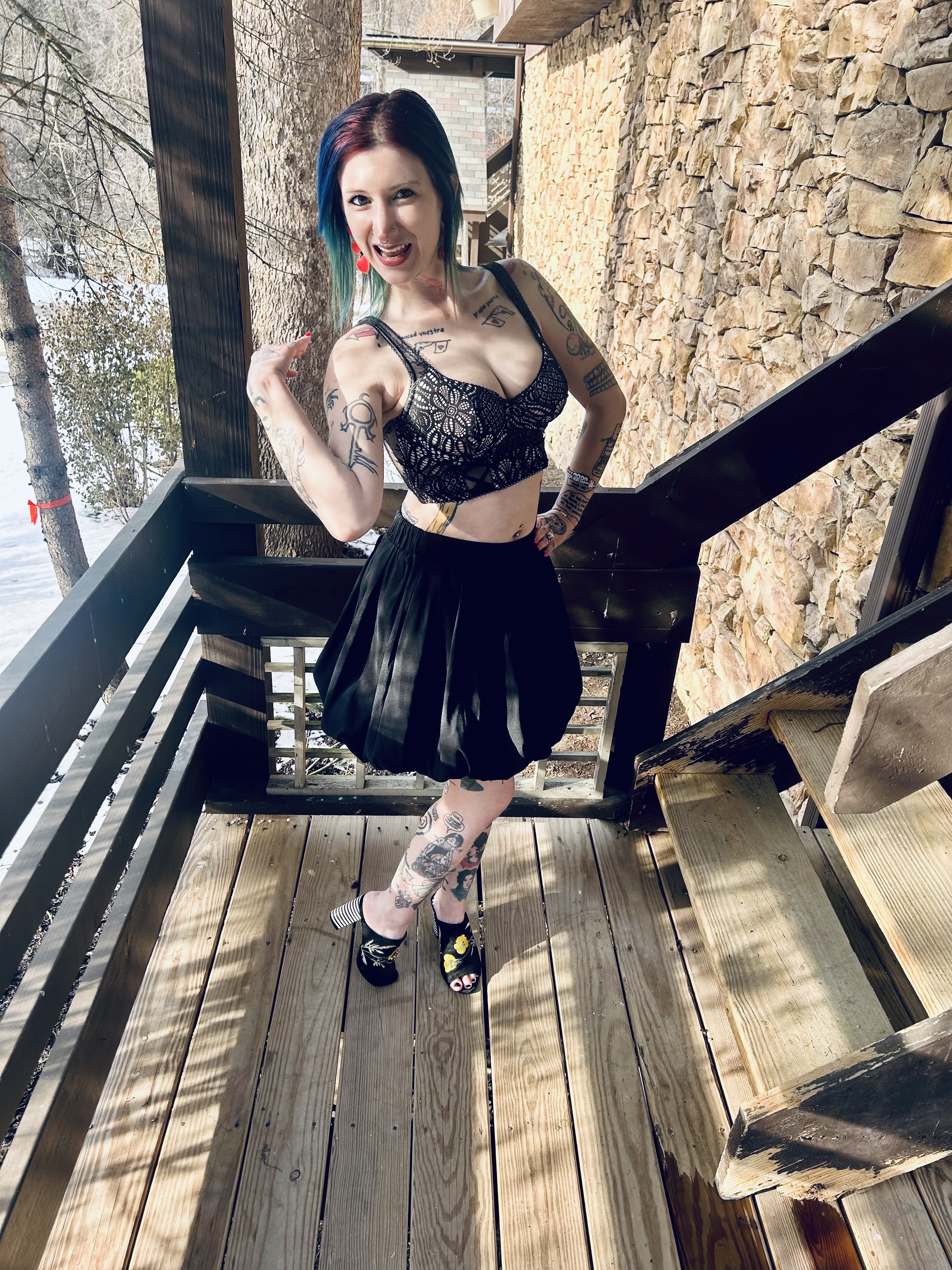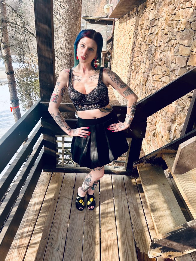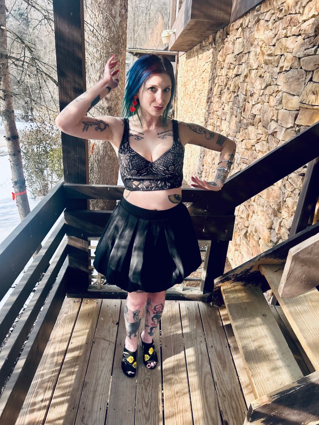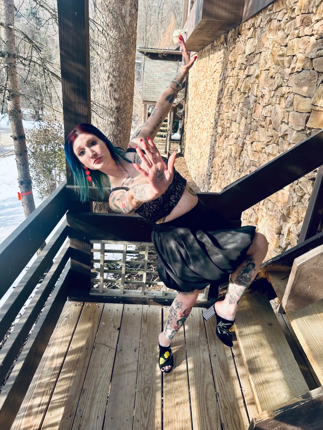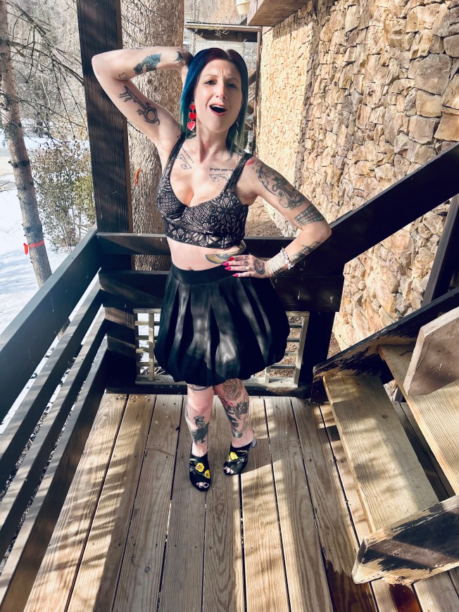 Hello everyone and welcome to the Blooper Reel from my V-Day OOTD! Johnny and I had an absolute ball on our Valentine’s Day date with a yummy dinner out and an evening at a Cupid’s Revenge haunted house. We ate like kings and had the most spooky, silly time at the haunt. We cannot wait to go back to the Haunted Schoolhouse And Laboratory for their St. Patrick’s Day haunted house next month! If it’s anything like the V-Day one, it will be a freaking hoot. 😀 Our night on the town was full of fabulous memories as well as super styling OOTDs on both of our parts. I felt like a V-Day queen but these pictures are more like me as the royal court’s jester lol, check it out: