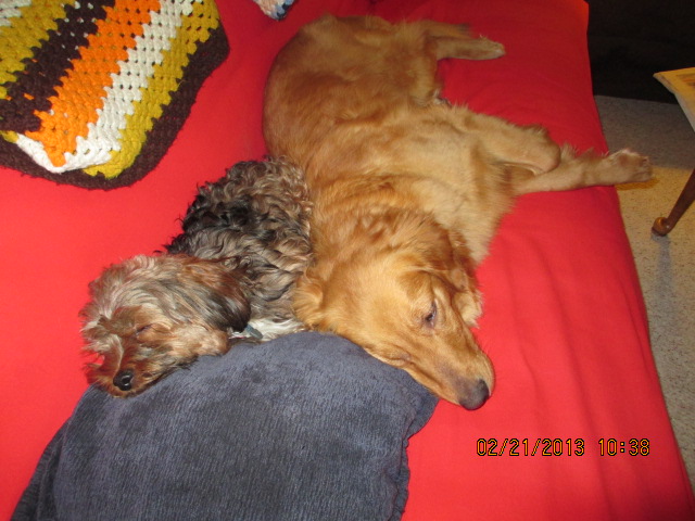 Above is a pic of my dogs Gem and Winston. My sister found Winston wandering around her old apartment complex where someone abandoned him. My pups love taking naps together! They’re obviously besties! 🙂 Have a lovely day! -Sarah