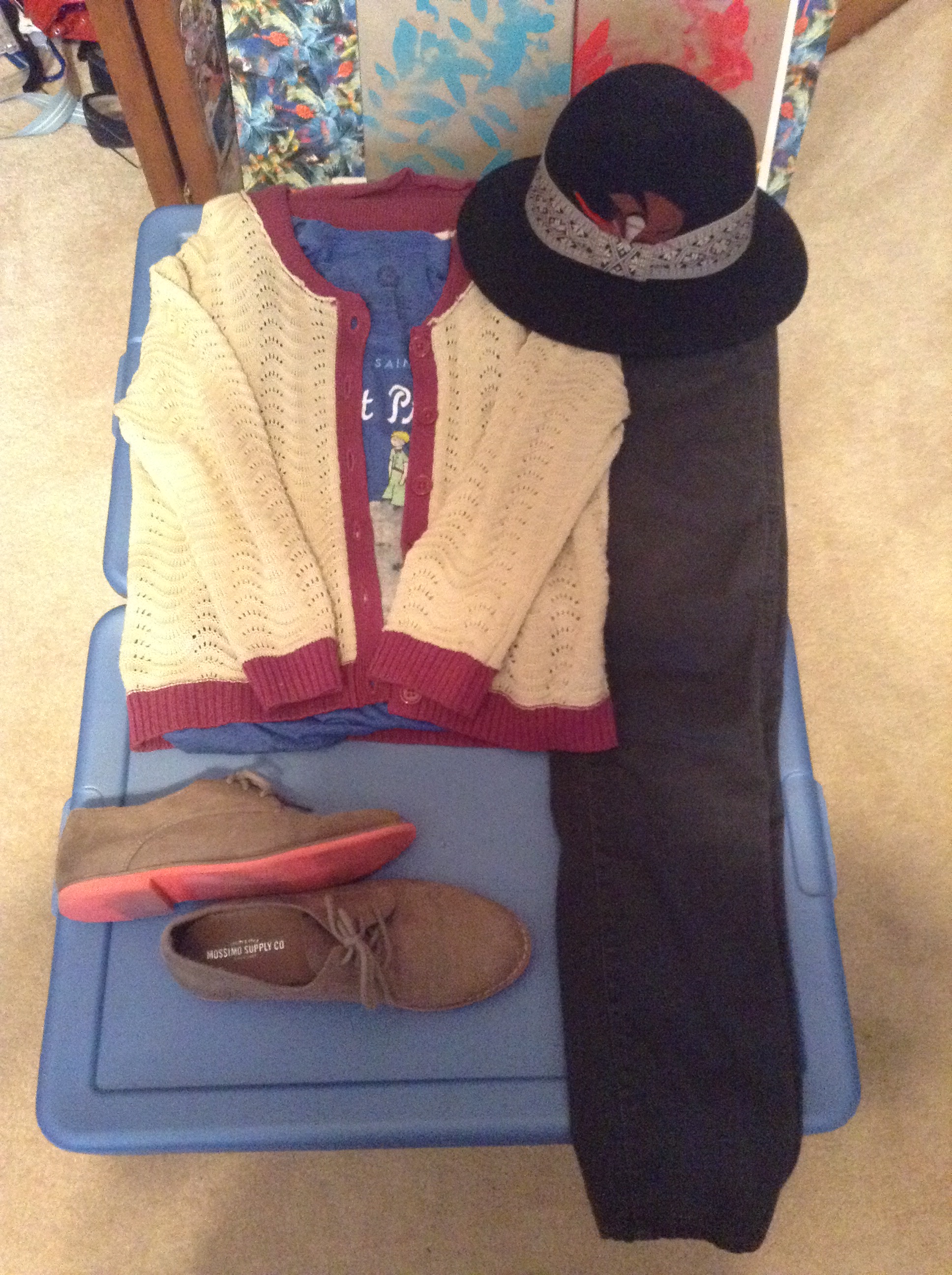 I had an absolute blast styling this outfit. I centered it around my cream and mauve Knitted Dove cardigan which is very “grandma-ish” in my opinion! I got this sweater years ago from Modcloth and it still remains to be one of my favorite purchases from the site. Once I knew the center piece of my look, I added all of the other articles of clothing accordingly. I thought that my hunter green skinny jeans from Aerie would be the perfect complimentary color to the cardigan. I also thought that the fit of these jeans would help add to the laid back look that I was rocking because they’re a regular old skinny jean and not a super skinny jean like I usually wear. To keep the outfit feeling fresh I added my Le Petit Prince shirt to wear underneath the cardi. The Little Prince is one of my favorite books of all time, so when I saw this shirt on Modcloth, I knew it had to be mine! It didn’t feel right pairing this look with my usual heels or combat boots, so I opted for a classic pair of Oxfords. I feel like every woman young and old owns at least one pair of these shoes. I own two myself, while my mom owns over five! To top off the look, literally, I added my favorite Gypsy Warrior hat for a fun and modern twist. As all of you know, I love clothing with sweet surprises worked into them. I really feel like it was all of the fun quirky details like the gorgeous crochet work on the back of my cardigan, the pop of hot pink soles on my shoes, and the red and white feathers in my hat that kept this look appropriate for a twenty year old. All of these charming surprises kept the look feeling really fresh – without them the look would have been very blah and just “grandma”. The unexpected details definitely elevated this look to Grandma Chic status!