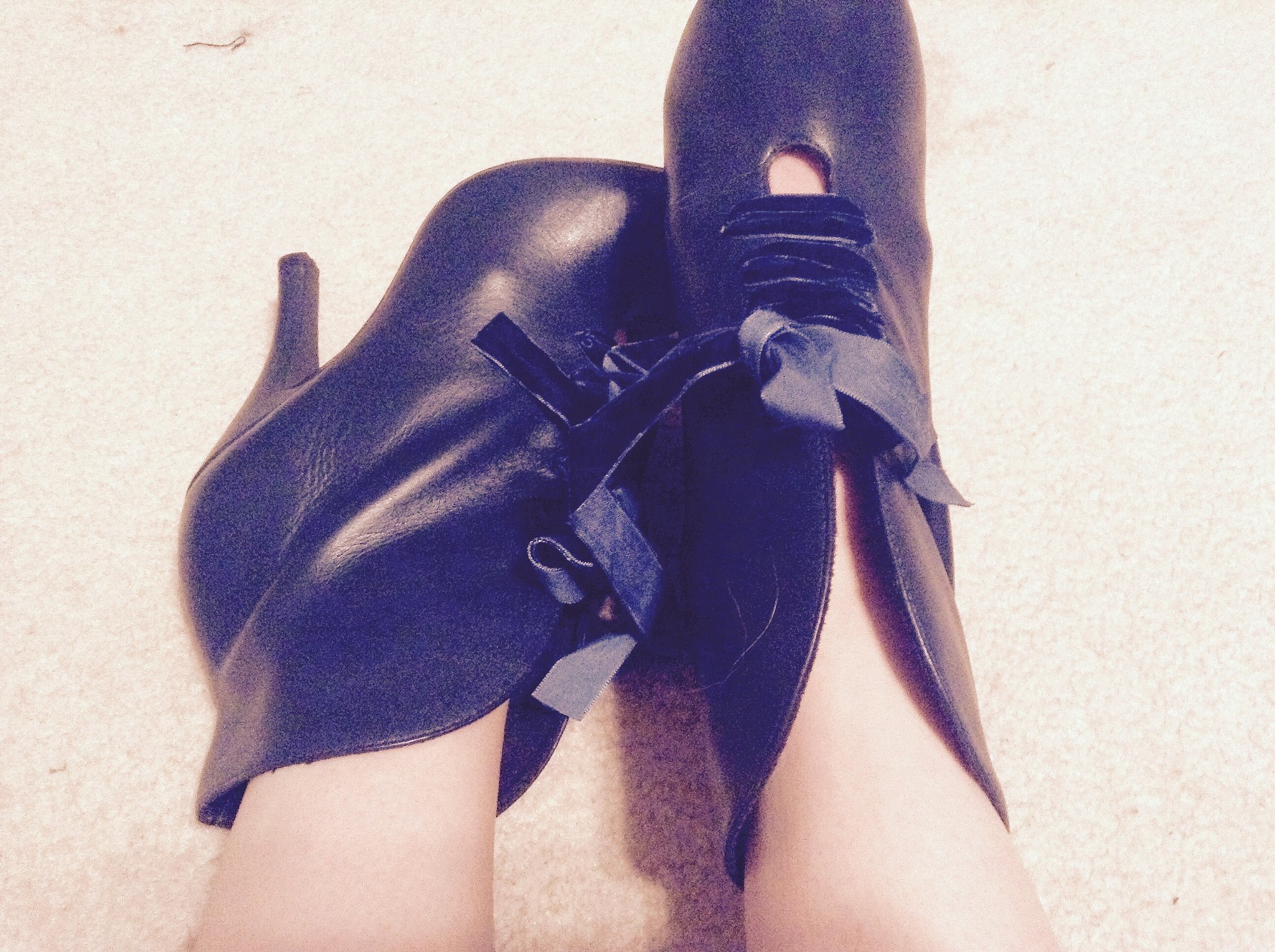 “Navy blue,” I thought to myself frantically, “NAVY FUCKING BLUE?!” Clearly, I was somewhat freaking out – but I just couldn’t help it! The thing about these heels is that I thought they were black as I placed my order. I was banking on them being black so that they would match the base color of my dress. The color quality on the ModCloth picture was not that great, so it definitely came as a bit of a shock when I got to see my shoe babies in real life. I was so excited about these heels and it was kind of devastating to open the lid of the box and not see jet black…Deep breaths Sarah, deep breaths.