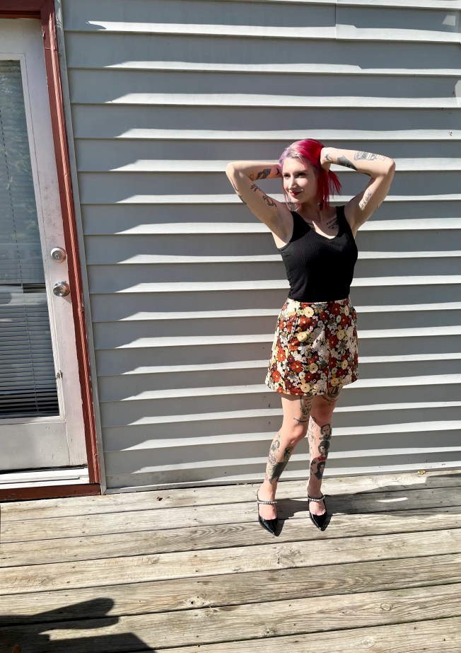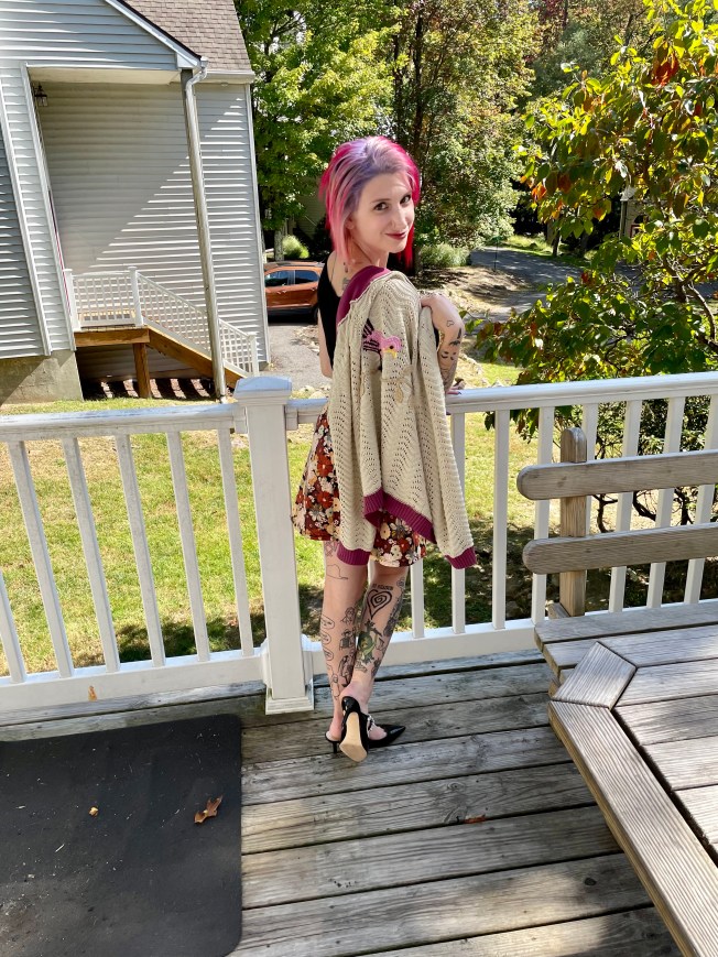 I have to say, Johnny has stepped up his photography game considerably thanks to all of my nitpicky directions. He has become a master at not cutting my feet out and I could not be more proud. In fact, he suggested that I put my cardigan over my shoulder which was an inspired idea. I was very impressed because I hadn’t even thought to do that. 😀