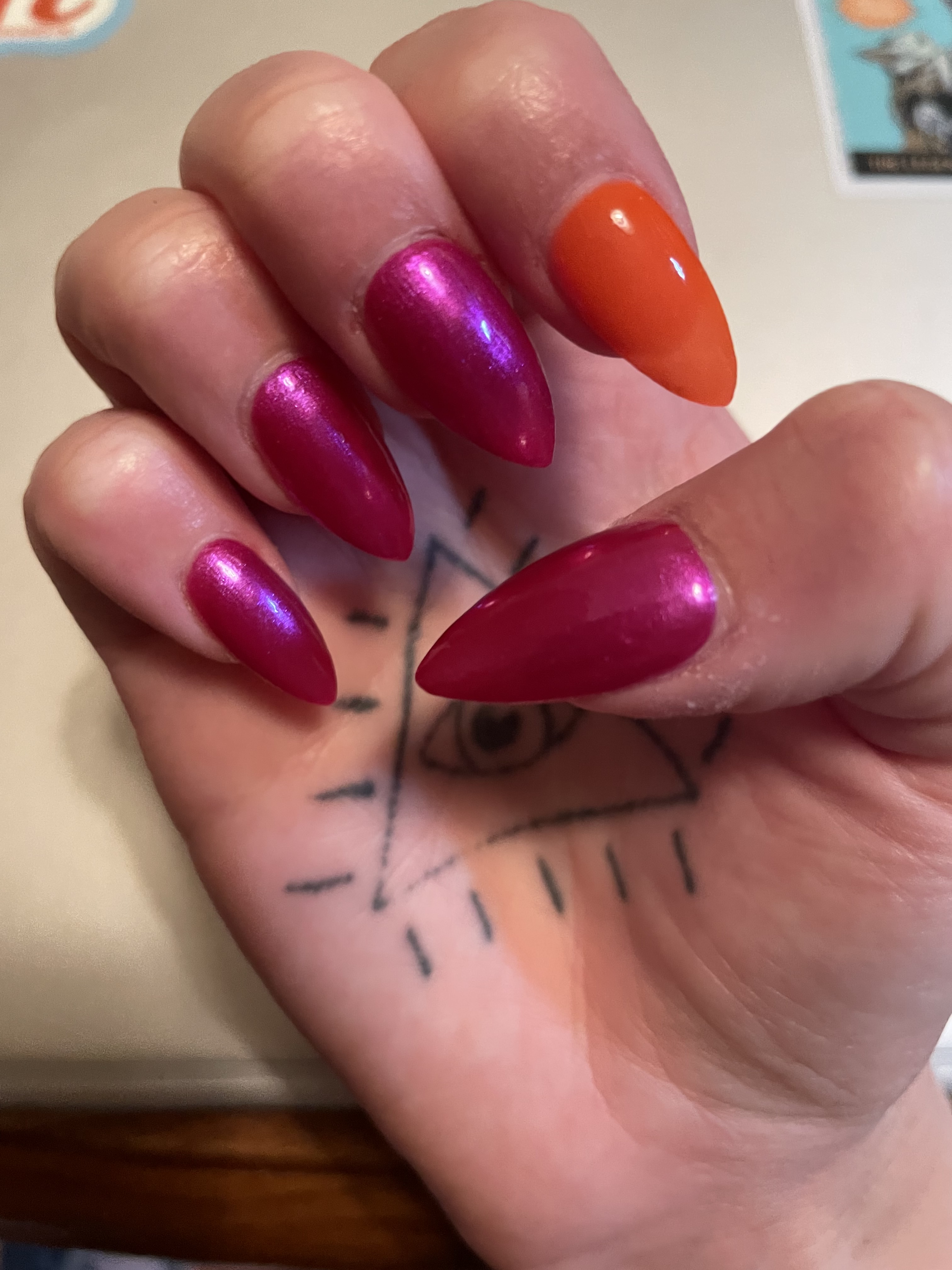 Despite a somewhat lackluster experience, my nails did turn out great and I am obsessed with the colors that I chose. Aside from my wedding, I have never gotten fun designs on my nails simply because I don’t feel like paying for it. This is why I wanted a nontraditional color combo that still said Halloween.