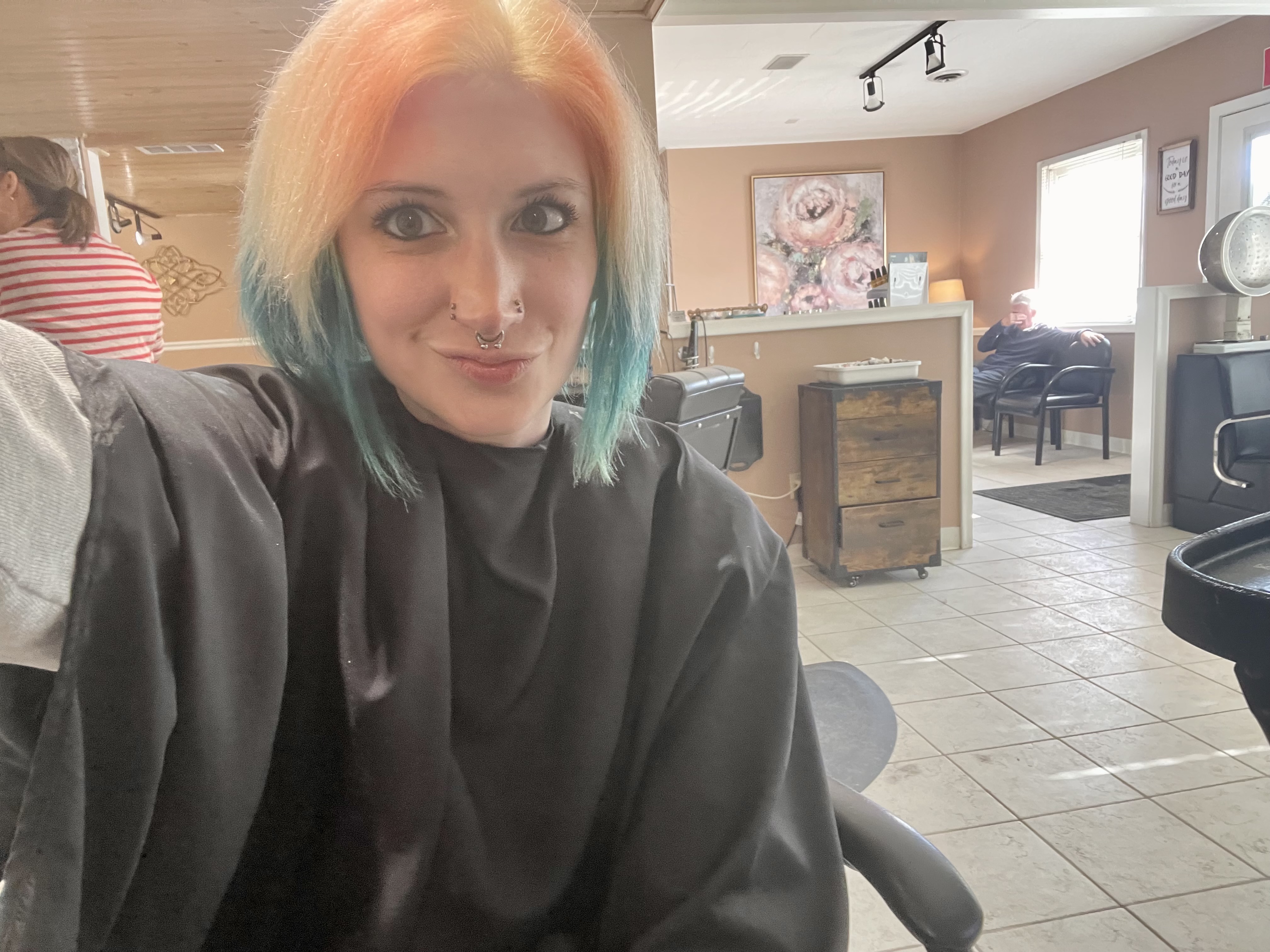 This time around, we were going to do a slight variation to the color palette we established at my last appointment. We were originally using a combination of Pulp Riot’s Nightfall, Eloped, Vintage Vegas, and Pyro. While the soft peachy shade of Eloped was pretty, it didn’t do anything for me as it started to fade. So, our plan was to brighten things up. We kept with Nightfall and Pyro, but used a mixture of neon orange Lava and Eloped for a more pronounced pop: