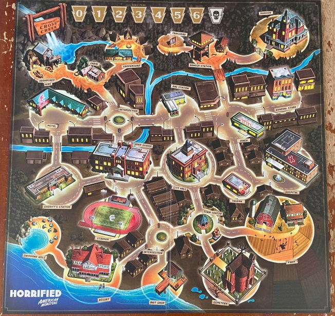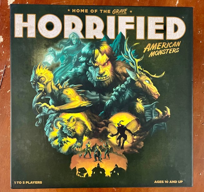 Howdy!! One of mine and Johnny’s all time favorite board games is called Horrified. In this game, you save a village from classic horror movie monsters like Dracula, The Mummy, The Invisible Man, etc. While we love the first edition of the game, we would always lament over the fact that different boards weren’t available. So, you can imagine our delight when we found out that wasn’t the case at all. Actually, there are three additional boards of Horrified. There is World of Monsters, Greek Monsters, and our newest addition – American Monsters. We played our first round a few days ago, absolutely crushed, and a fun time was had by all. Check it out: