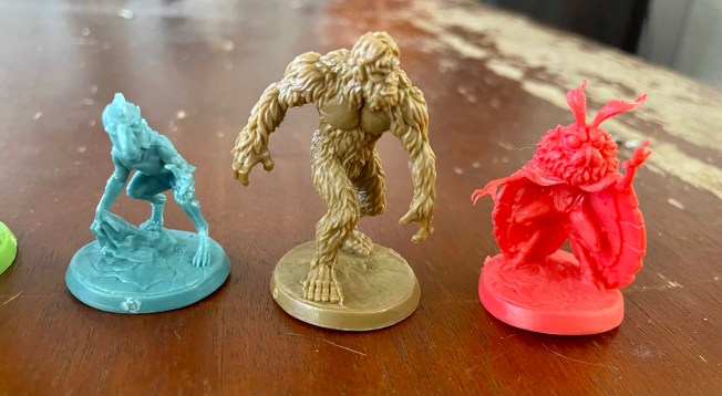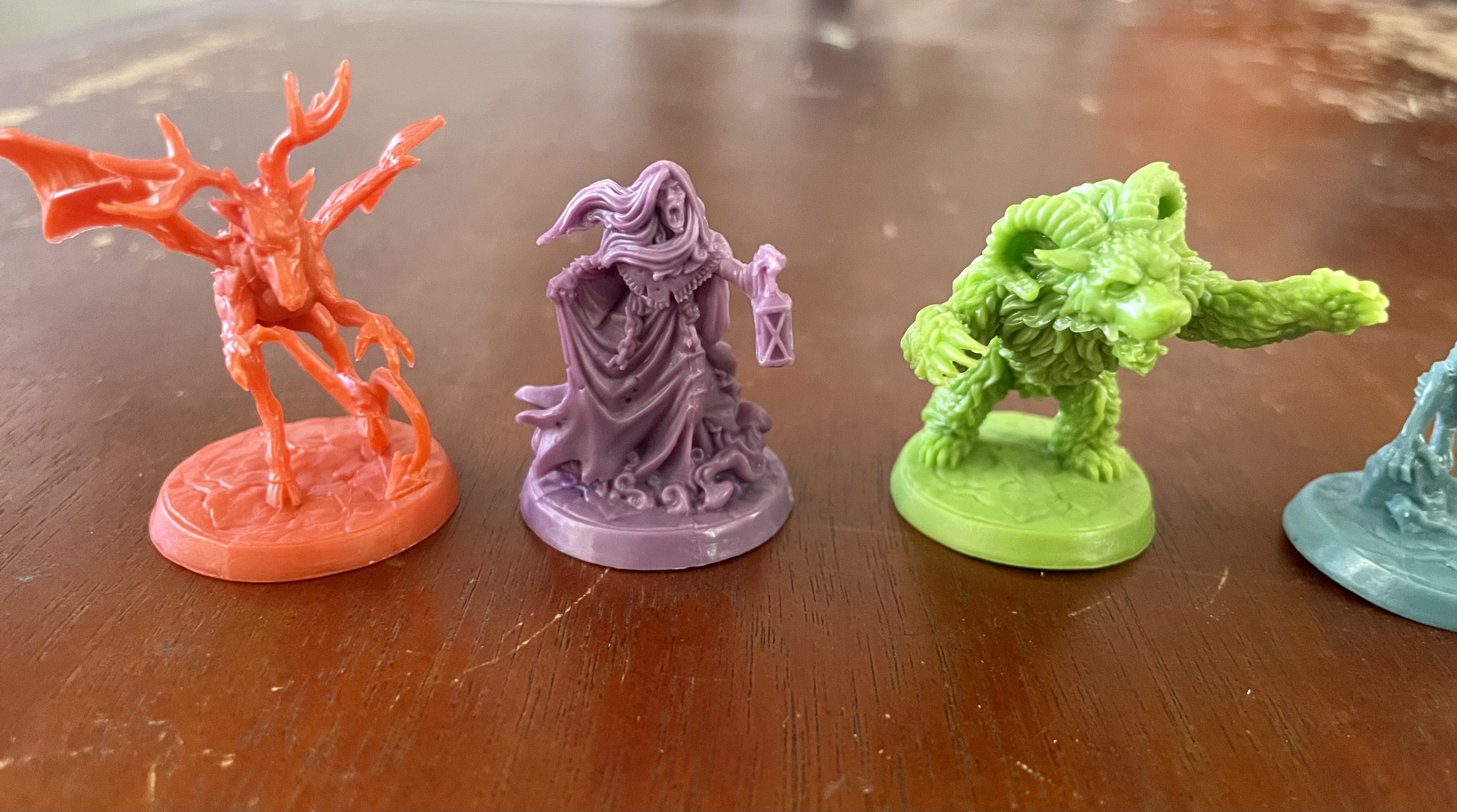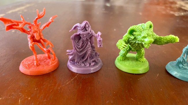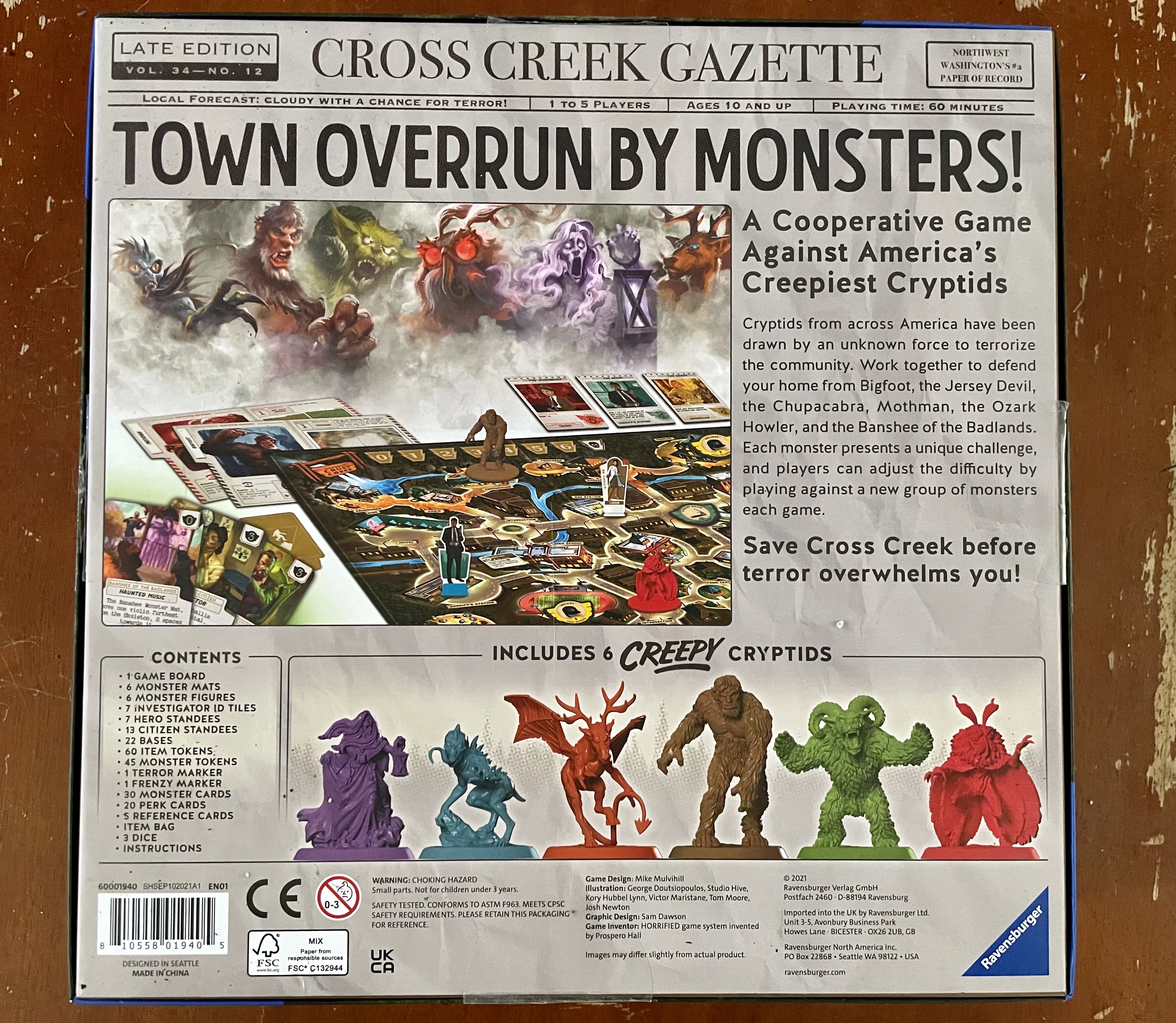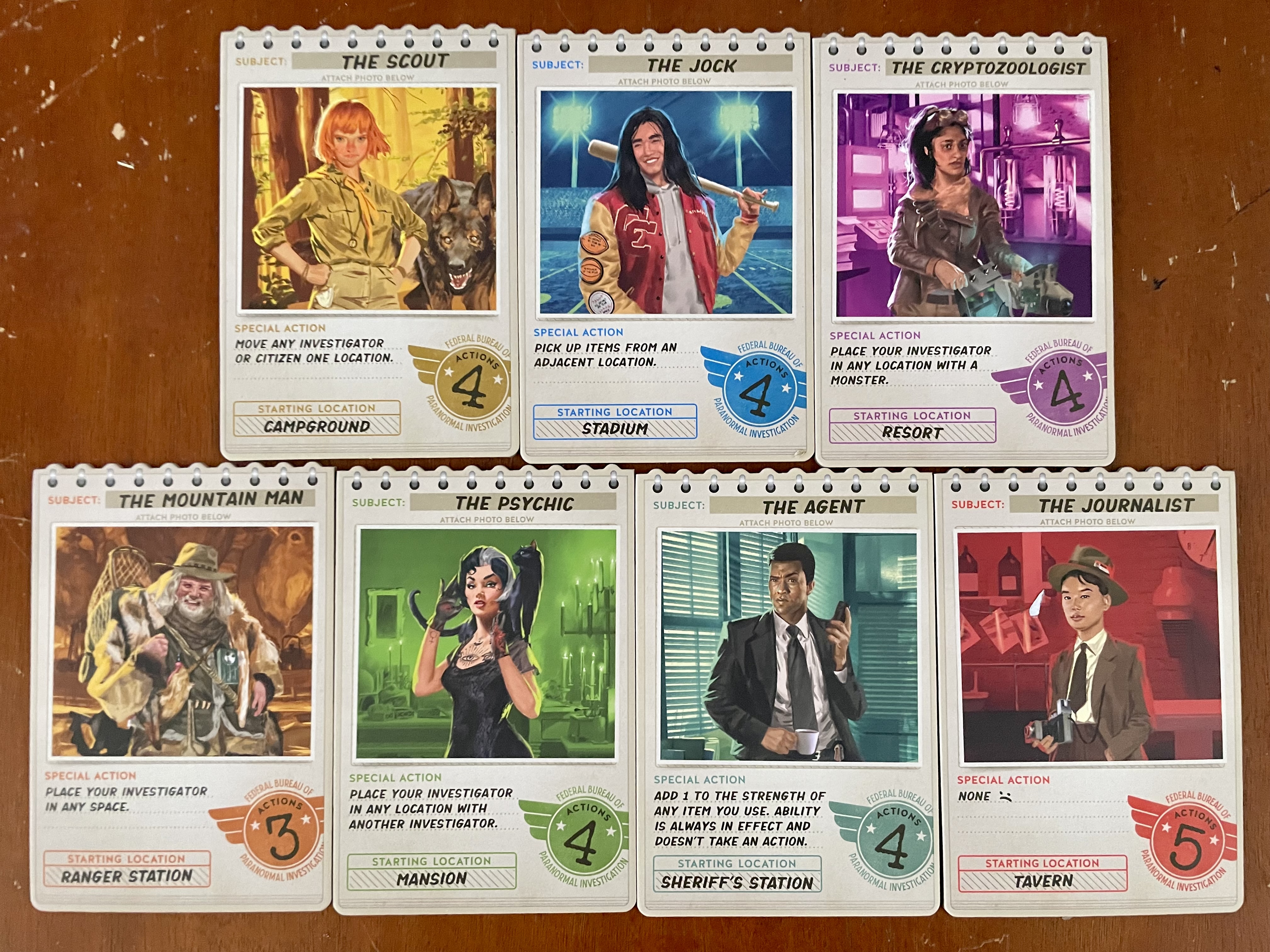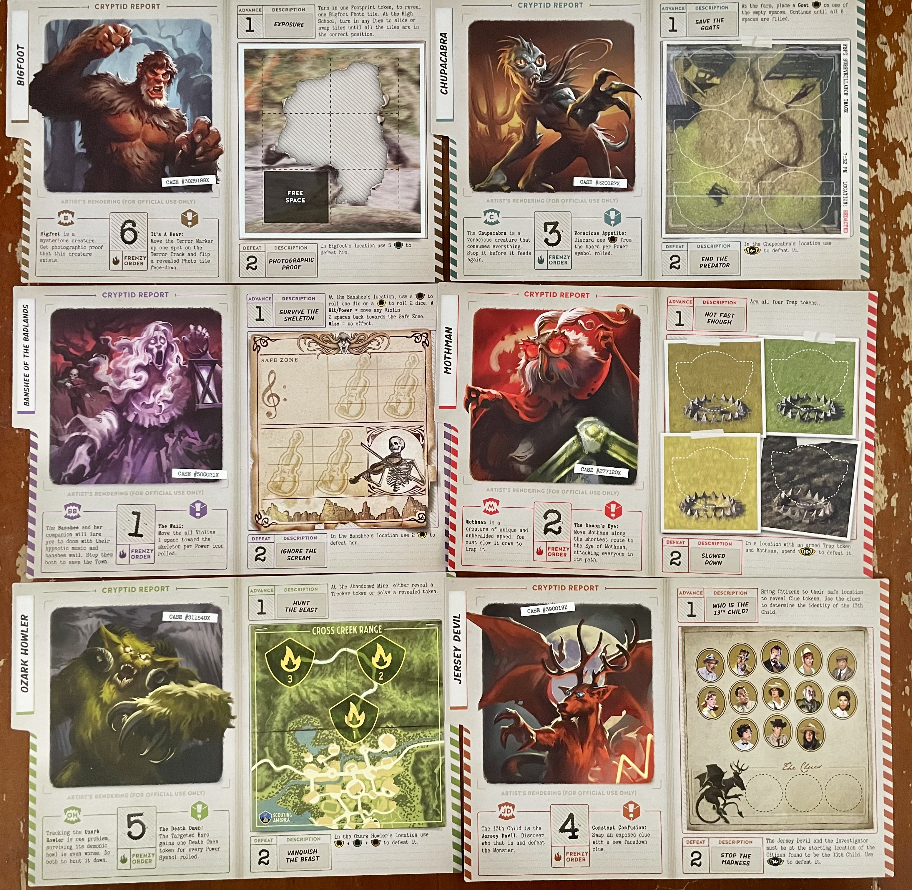 Like the other expansions of Horrified, the game play in American Monsters remains the same: Complete the tasks to defeat the monsters and bring safety to a peaceful town. The only difference is, of course, the monsters, heroes, villagers, and items. In the American Monsters expansion, the monsters are all cryptids that include Bigfoot, Mothman, the Jersey Devil, Chupacabra, Banshee of the Badlands, and the Ozark Howler. As per the game’s recommendation, we played against the Chupacabra and the Banshee of the Badlands. And, as per random selection, I played as the Cryptozoologist and Johnny played as the Mountain Man and can I please repeat that we totally dominated!