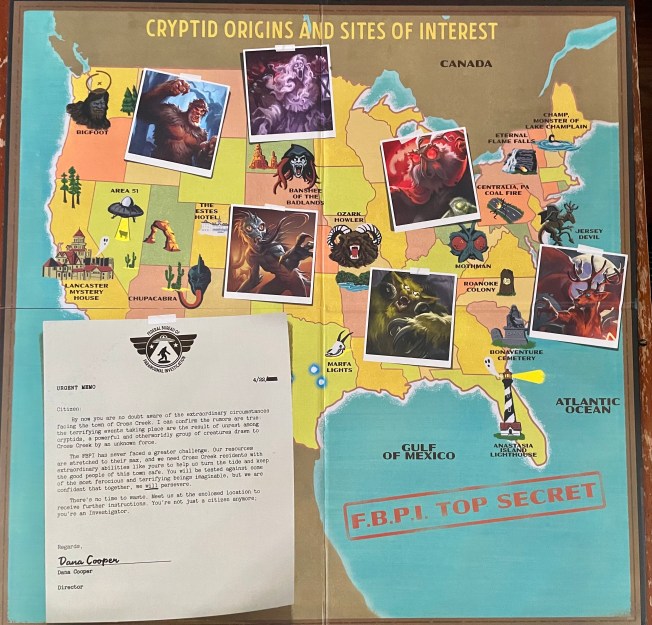 The pairing that the directions suggested was a way to dip your toes in the water in terms of difficulty. Despite the Chupacabra and the Banshee of the Badlands being the easiest way to start, I really think it was the characters we ended up with that helped the most. If you are new to the game, the Cryptozoologist and the Mountain Man worked incredibly well together against these monsters because of their special powers. Johnny’s character could move to any space and mine could move to any space with a monster in it. This gave us the ability to move here, there, and everywhere with ease which was so beneficial for the tasks we needed to do. Had we randomly drawn different heroes, the game probably wouldn’t have gone as smoothly and I highly recommend the monster and hero pairings we did if you are a brand new player. It will definitely help boost your confidence to learn the game in a lower key way and get an easy win under your belt.