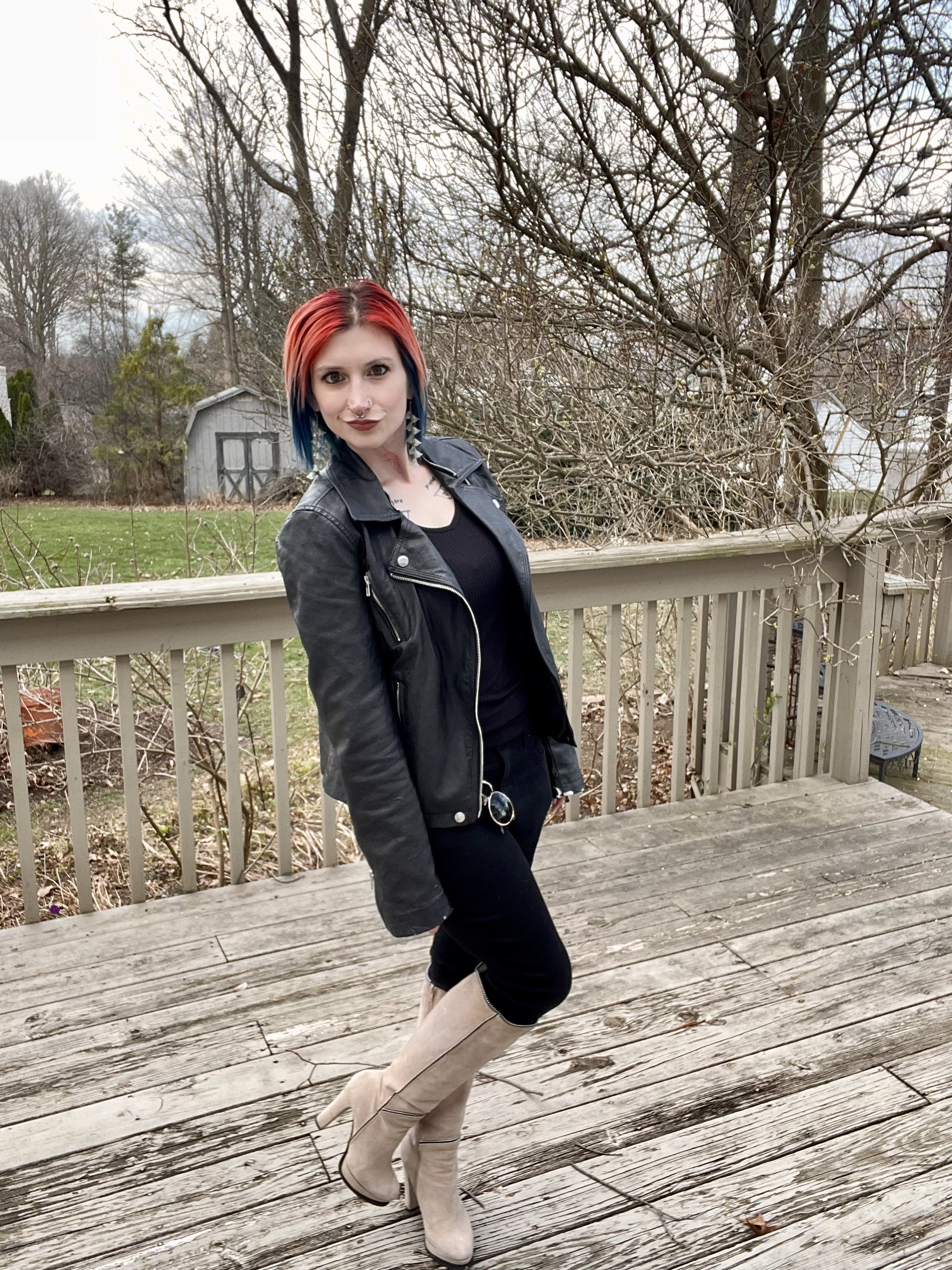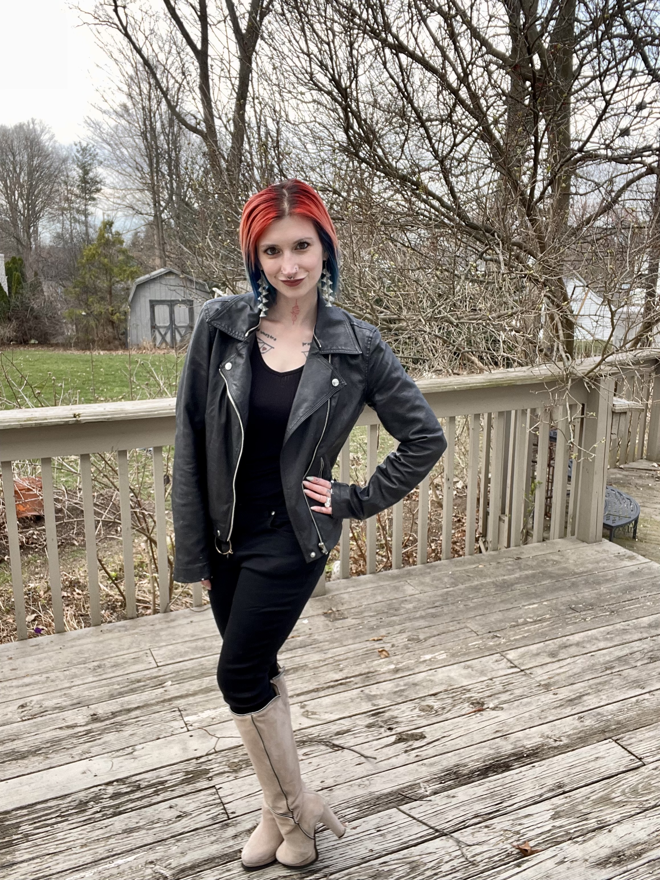 As a forever emo kid, I always have All Black Everything OOTDs on my mind and that was what I was in the mood for for our night on the town. It was a fairly nice evening that only required a light jacket and the first thing that came to mind was a hand me down moto jacket from my sister. Funnily enough, Johnny wanted to wear it that night too because he claims it’s “his” but I got to it first! What’s that old saying about the early bird and the moto jacket again?