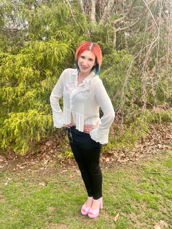 As I was going through my mental Rolodex of spring clothing, I locked in on the adorable embroidered button down by Lauren Conrad. This shirt is old AF but I still remember the high of that purchase from Kohl’s fondly because it was on clearance for five dollars. You can’t beat that!! This top is spring to the T. I love the gauzy material that provides so much pretty movement and the embroidered birds and flowers are the perfect spring pattern. The pink in the flowers also provided me with the ideal pastel hue to pull from as I accessorized the look.