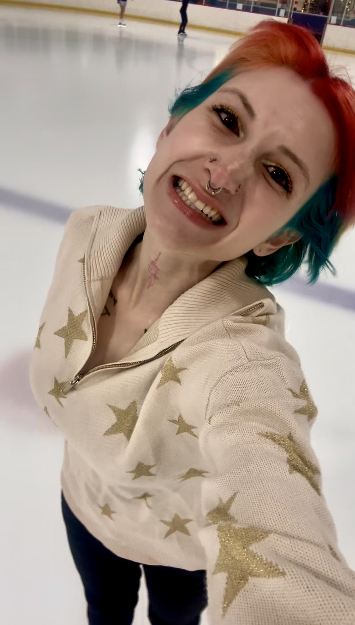 Hello!! My childhood sport of choice was competitive figure skating and I stopped when I was about sixteen years old. After that, I would skate just for fun and coach for the Special Olympics a few years later. Prior to the pandemic starting, I thought it would be cool to try ice dancing and take lessons again and did just that. Cue pandemic, what felt like an indefinite hiatus, then I was back. Until I wasn’t lol. I had an extremely off putting encounter with a male coach and it instantly sucked all of the joy out of being on the ice again. So, I hung up my skates and never went since. Until this weekend!! Check it out and peep the videos on my TikTok @lilred6794 :