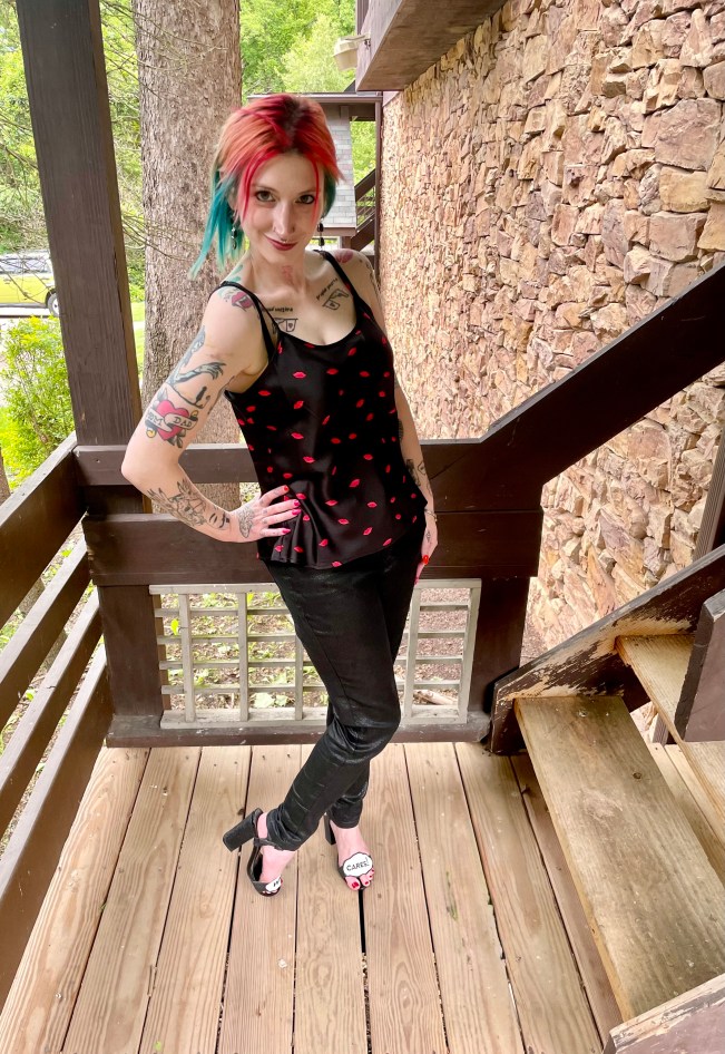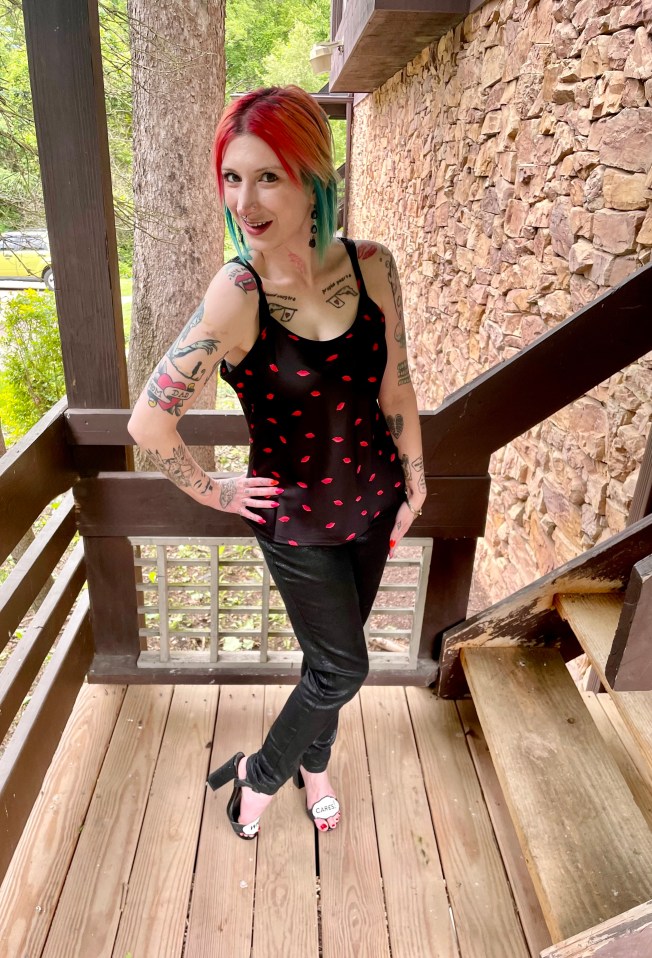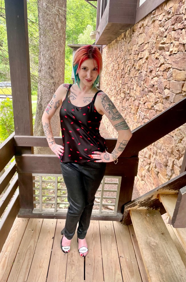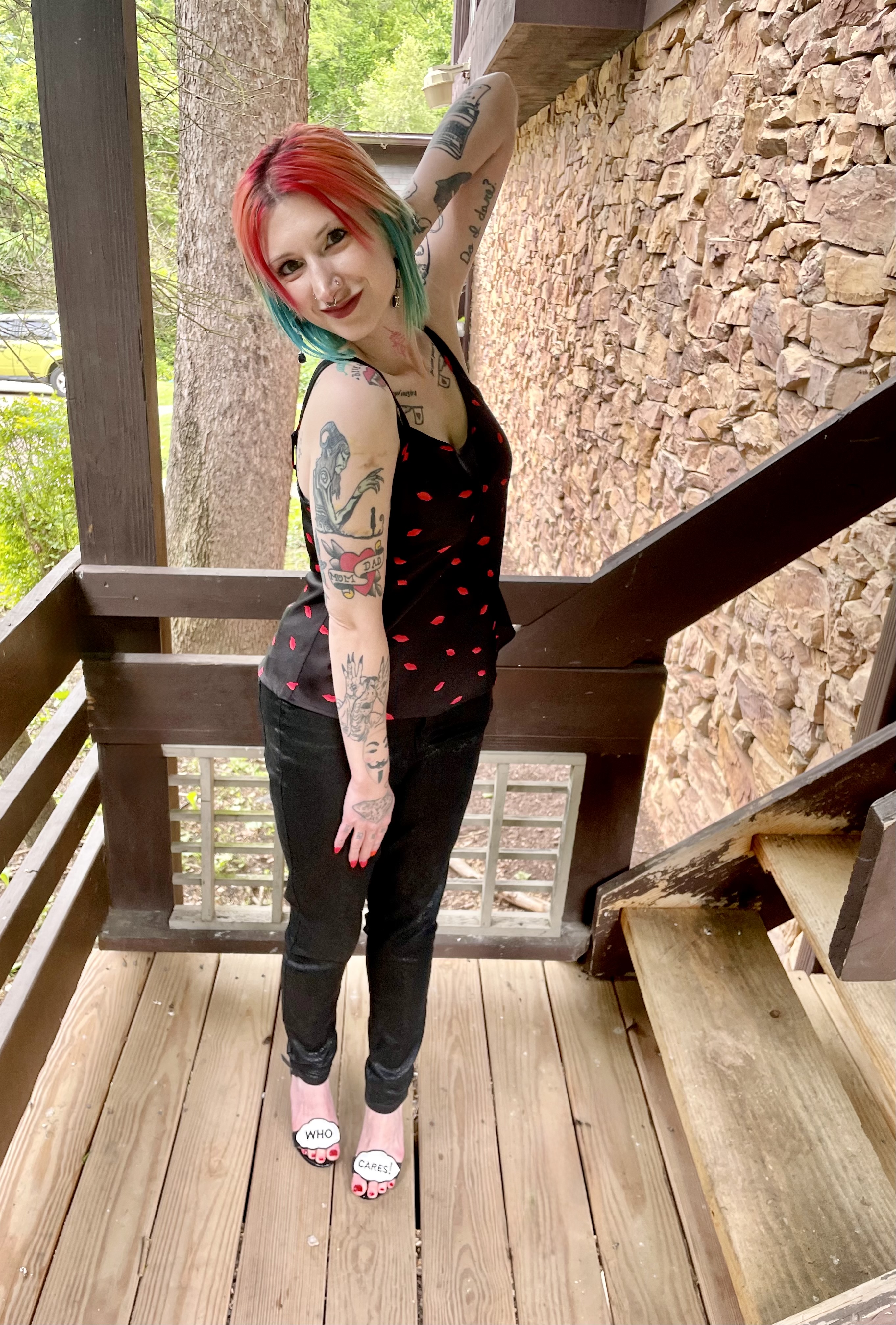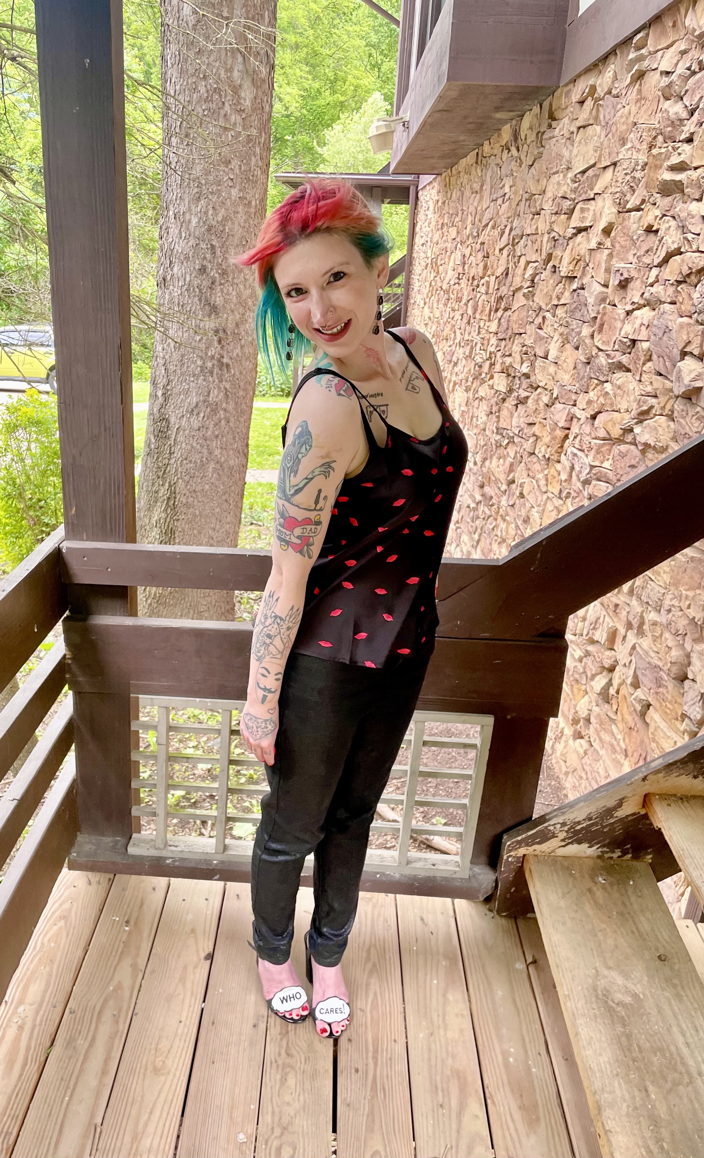 It has been getting hot, hot, hot in good ol’ Akron, Ohio and TMI but I had finally shaved my armpits lol. So, I started building this outfit by browsing in the cami department. Hey, I just had to show off those silky smooth pits! My eyes landed on the adorable lipstick kiss cami that I purchased at Target for mine and Johnny’s Valentine’s Day date this year. While this pattern might be traditional for V-Day, that doesn’t mean it can’t be worn literally whenever I want and I love this top. It fits like a glove, has a gorgeous sheen, and is sexy without me feeling like it’s too much. With this little number as the focal point, the rest of the outfit built itself from there.