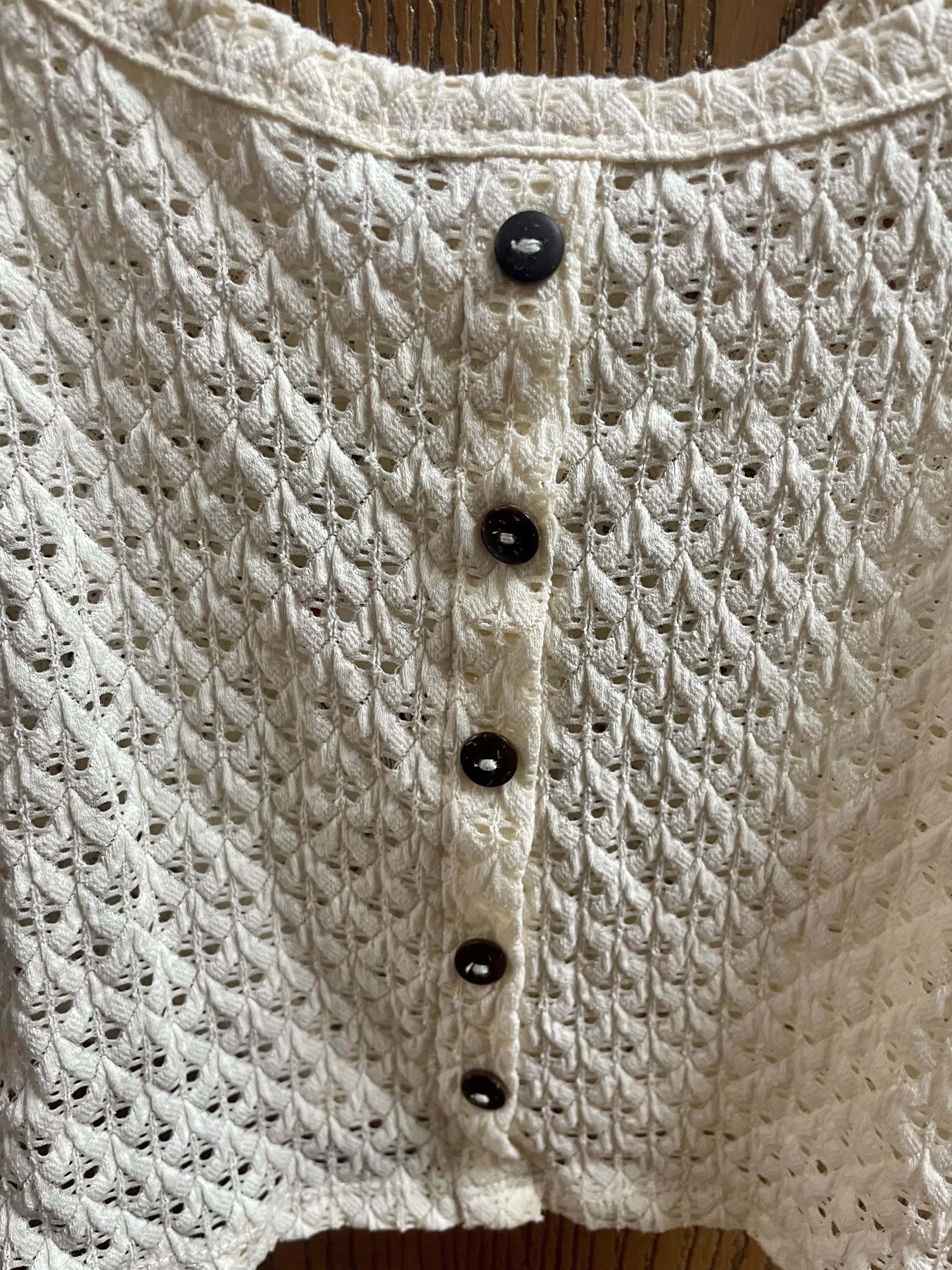 Black will forever be my favorite color and a majority of the clothes in my wardrobe feature it. In stark contrast, I also adore white clothing – especially cream hues. These shades make my tattoos pop and I love being able to enhance my artwork accessories. I already have several cream crochet style crops in my closet so, unsurprisingly, this little number by Bozzolo caught my eye. It was an instance where I knew immediately that it would work, the price was nice at under ten bucks, and into the cart it went.