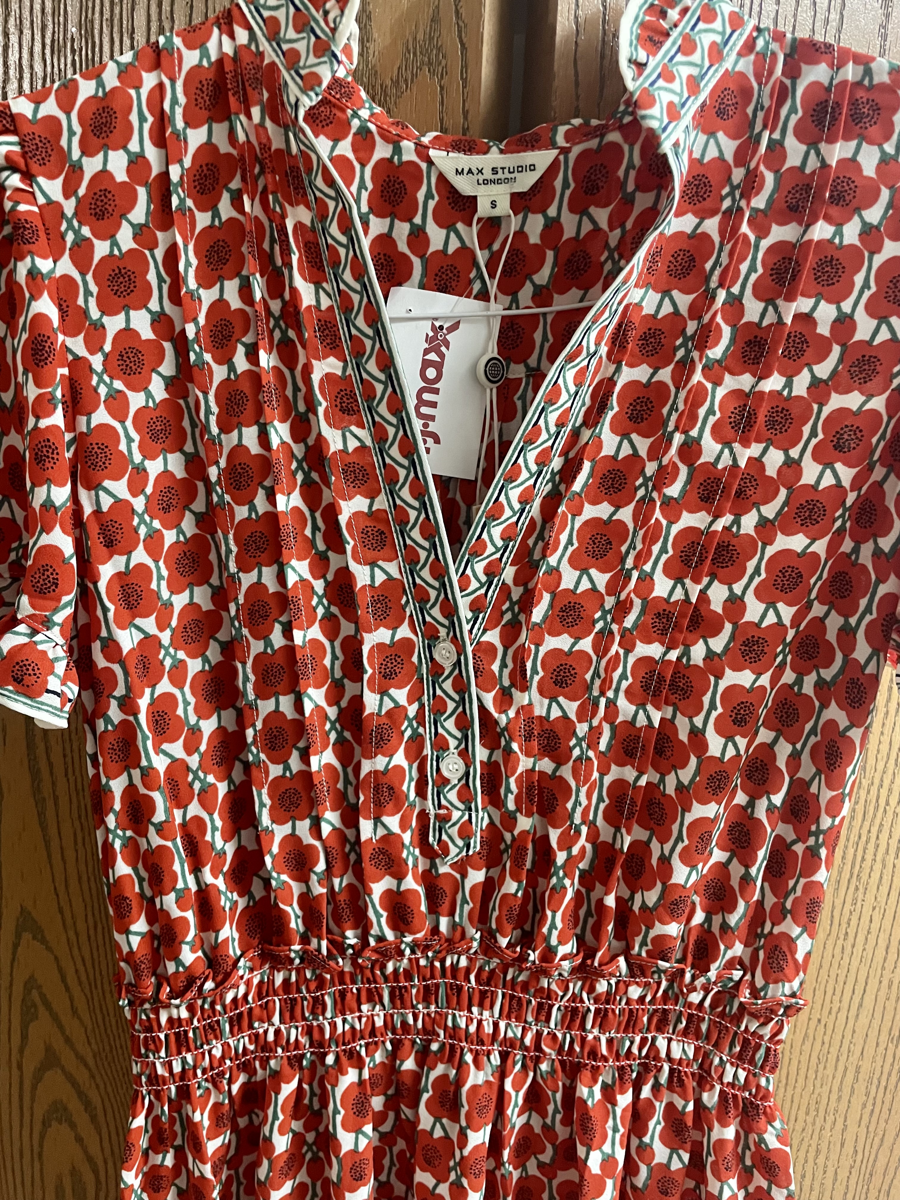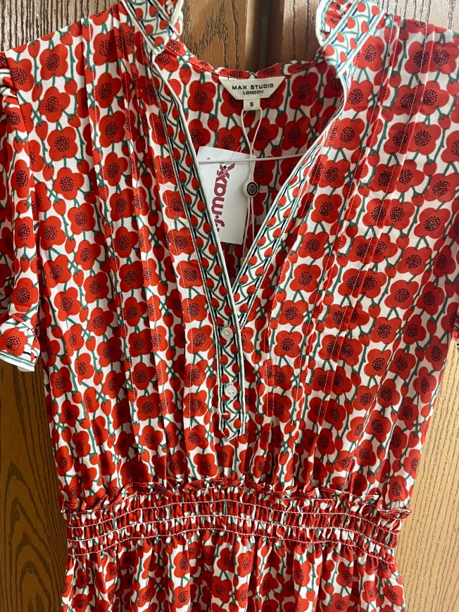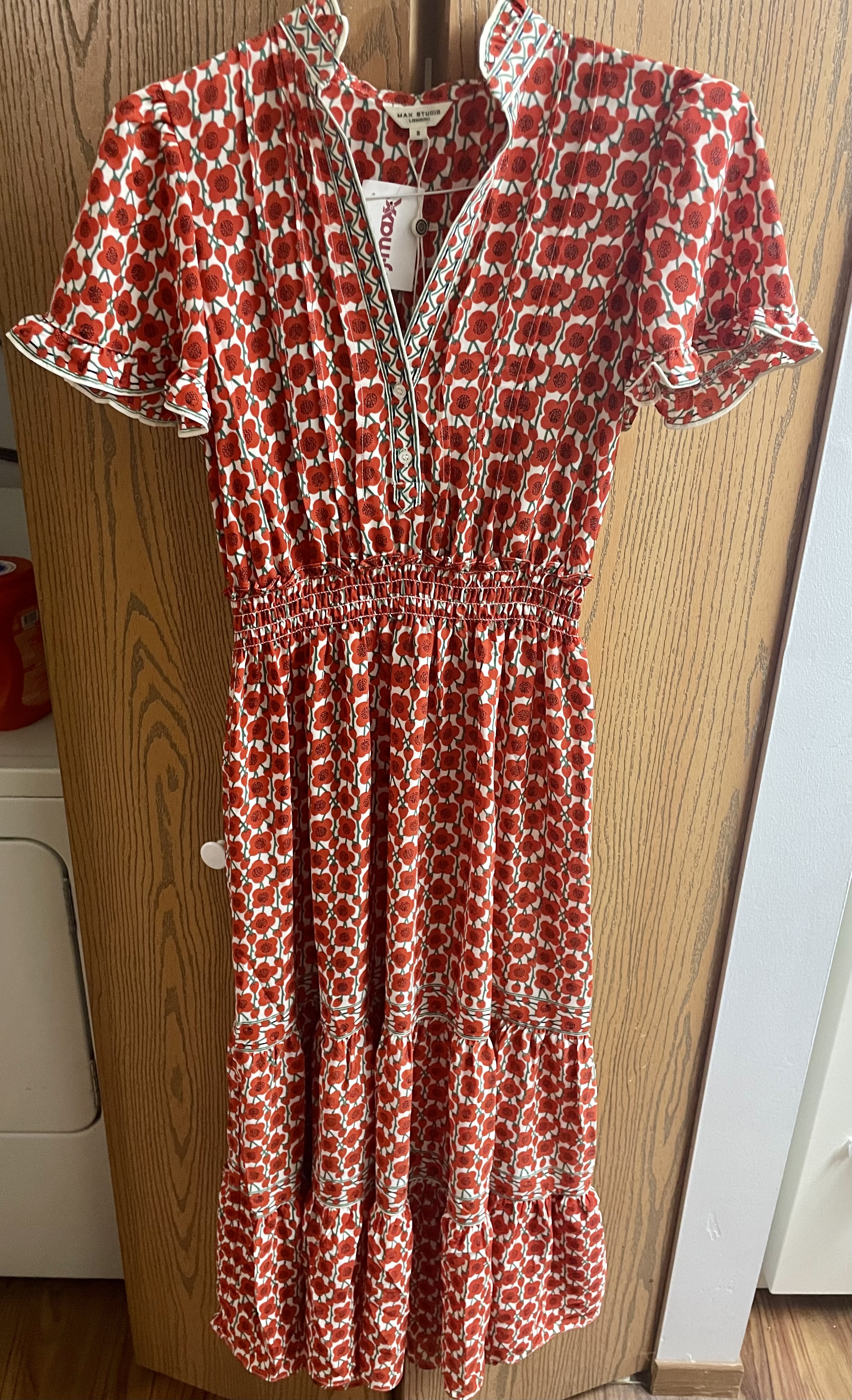 Howdy!! The final item from my TJMaxx summer wardrobe refresh haul is truly the piece de resistance. Other than a couple of new tops, I was really hoping to find a sun dress or two. What I ended up with, however, was a maxi dress that caught the corner of my eye. I walked past it while I was heading to the dressing rooms, did a double take, tossed it into the cart, and knew it was a winner as soon as it was on. This Max Studio maxi dress is serving all of the Midwest Princess vibes and I am a thousand percent there for it! Check it out: