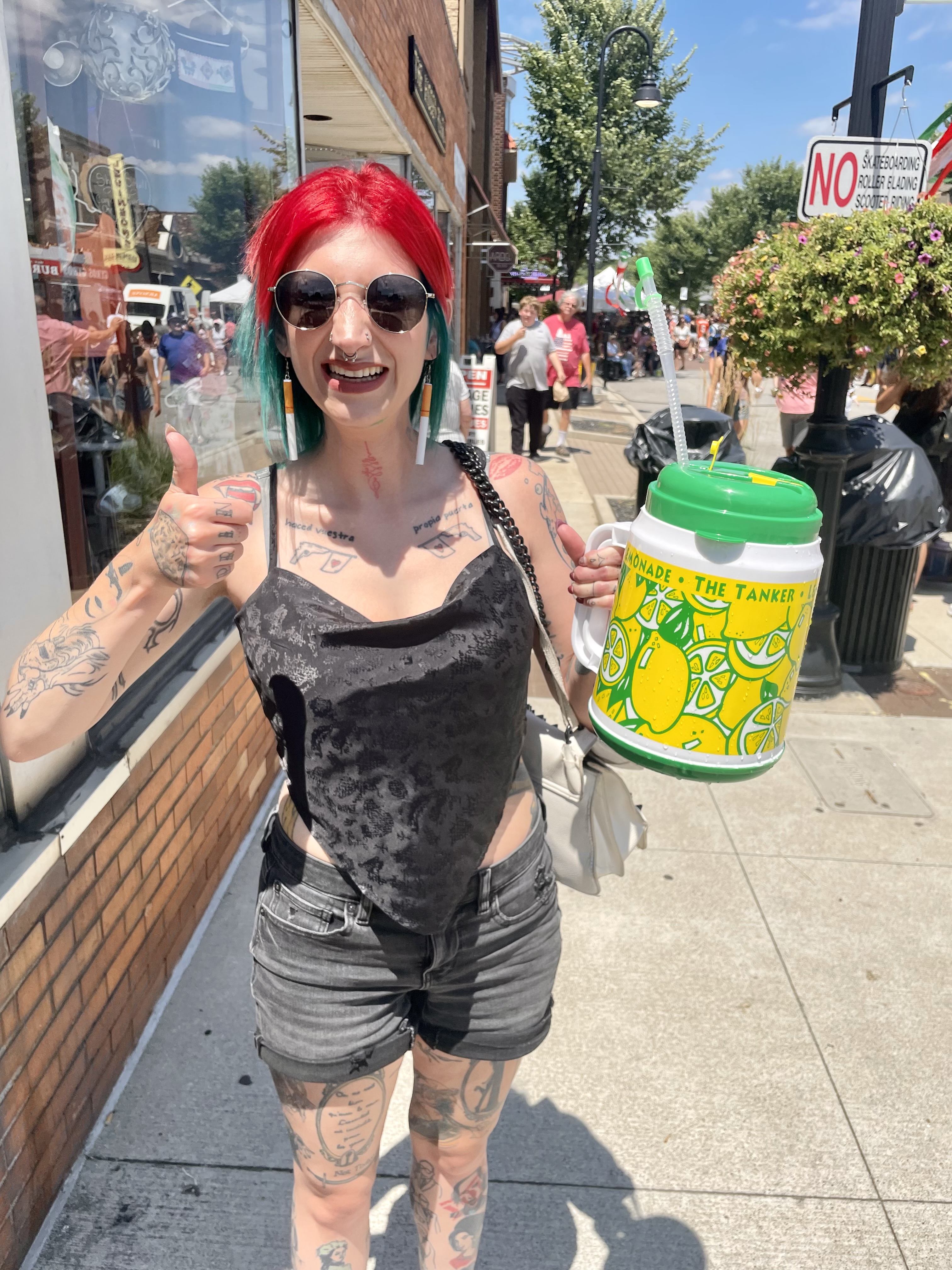 My only request for the Italian Fest was that I absolutely had to get a fresh squeezed lemonade because it is one of my favorite summer treats. We decided to take a lap around to see which food truck we would order our lunch from. Blessedly, a lemonade stand was right at the beginning of our rounds and I basically ran to it and ordered myself a large cup. When Johnny caught up, he asked me why I didn’t get the fifteen dollar tanker and I told him I didn’t want to put him out because this date was on him. Even though my large lemonade was already ready, he asked the girls working the booth if I could have a Tanker too and they happily obliged. This freaking growler of lemonade was as hilarious as it was heavy and Johnny and I took turns toting it around and sipping liberally. It was DELICIOUS and we both plan on jokingly taking our Tanker to work as our water tumbler for the day. What a hoot! 🙂