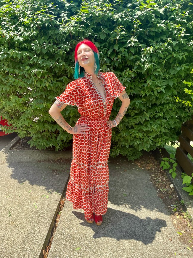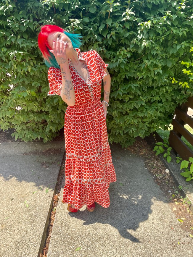 Hello everyone and welcome to the Blooper Reel from my Maxi Dress, Max Style OOTD! I always look forward to taking OOTD pictures and TikTok videos, but was especially excited for this particular look. I had just got my hair done, was sporting a new favorite dress, and was feeling my goddamn self and have been every day since my appointment at the Shear Shop. It’s amazing what a new do can do to crank the ol’ self esteem up to eleven! The shots you are about to see definitely don’t fall under the feeling myself category but let’s take a look anyways:
