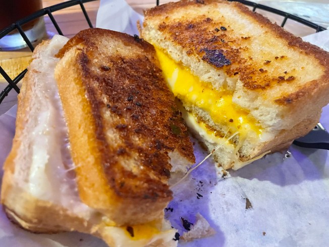 Our food arrived shortly after we returned from the bar and, as always, everything was delicious. There is no one who appreciates a restaurant with a really good vegetarian menu more than me and Mr. Zubs delivers. They have a ton of meals and apps for vegetarians and vegans alike and it’s nice to be able to have my pick of a bunch of different things rather than a lone veggie burger. Whenever Johnny and I DoorDash Zubs, I have to get their grape leaves and this time was no different. They are not the best I have ever had – that is reserved for a tiny Mediterranean market up the road from my place but they still hit the spot. I also got their triple decker grilled cheese which was worth every difficult bite because it was delicious!
