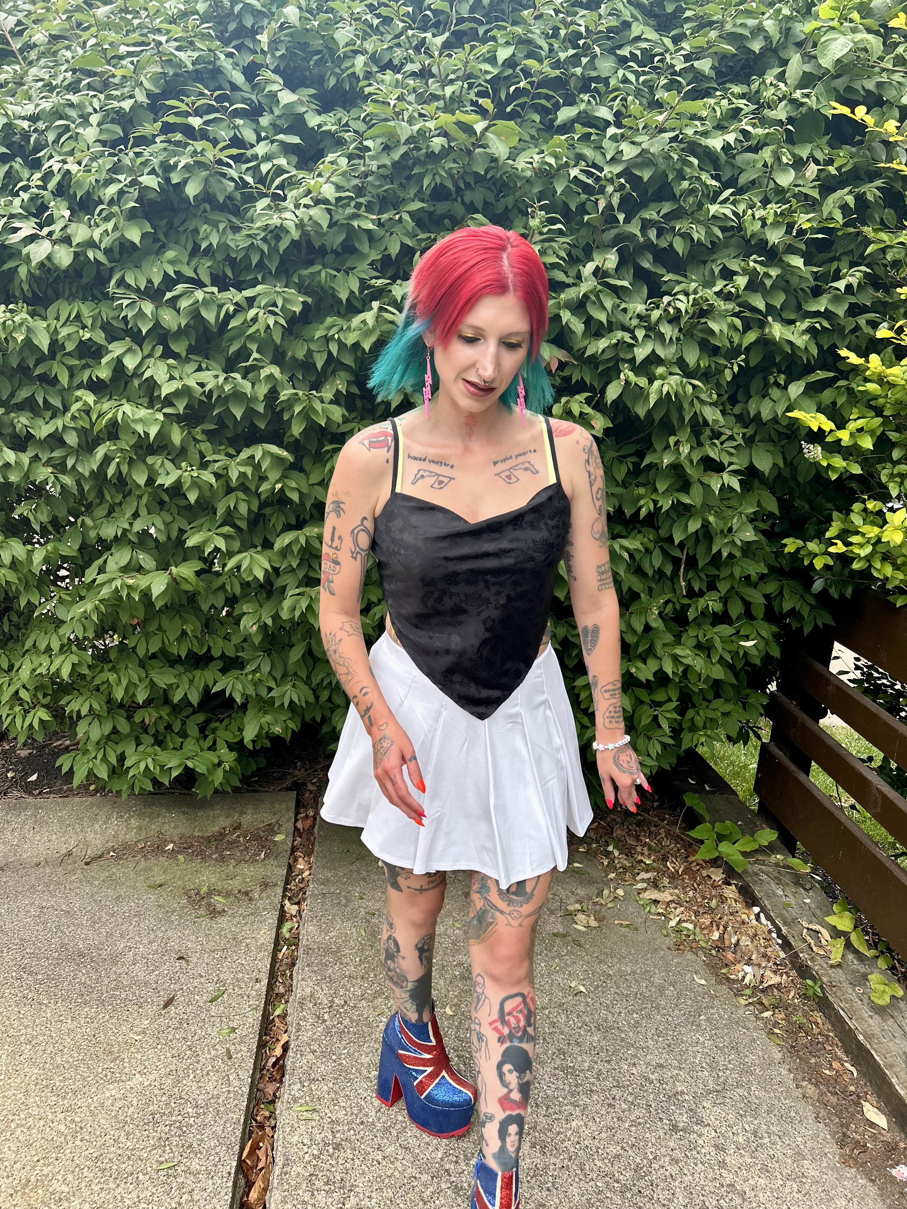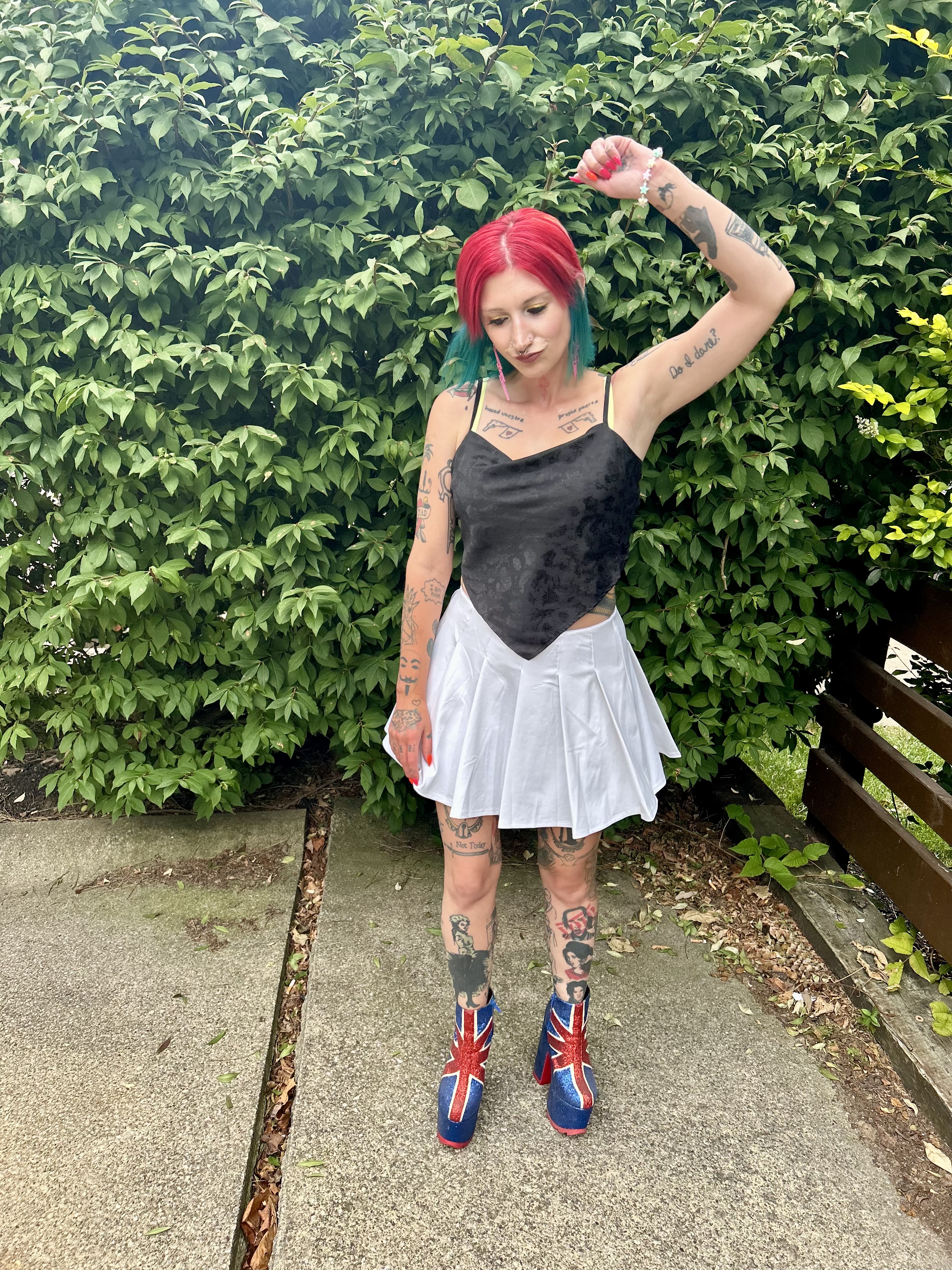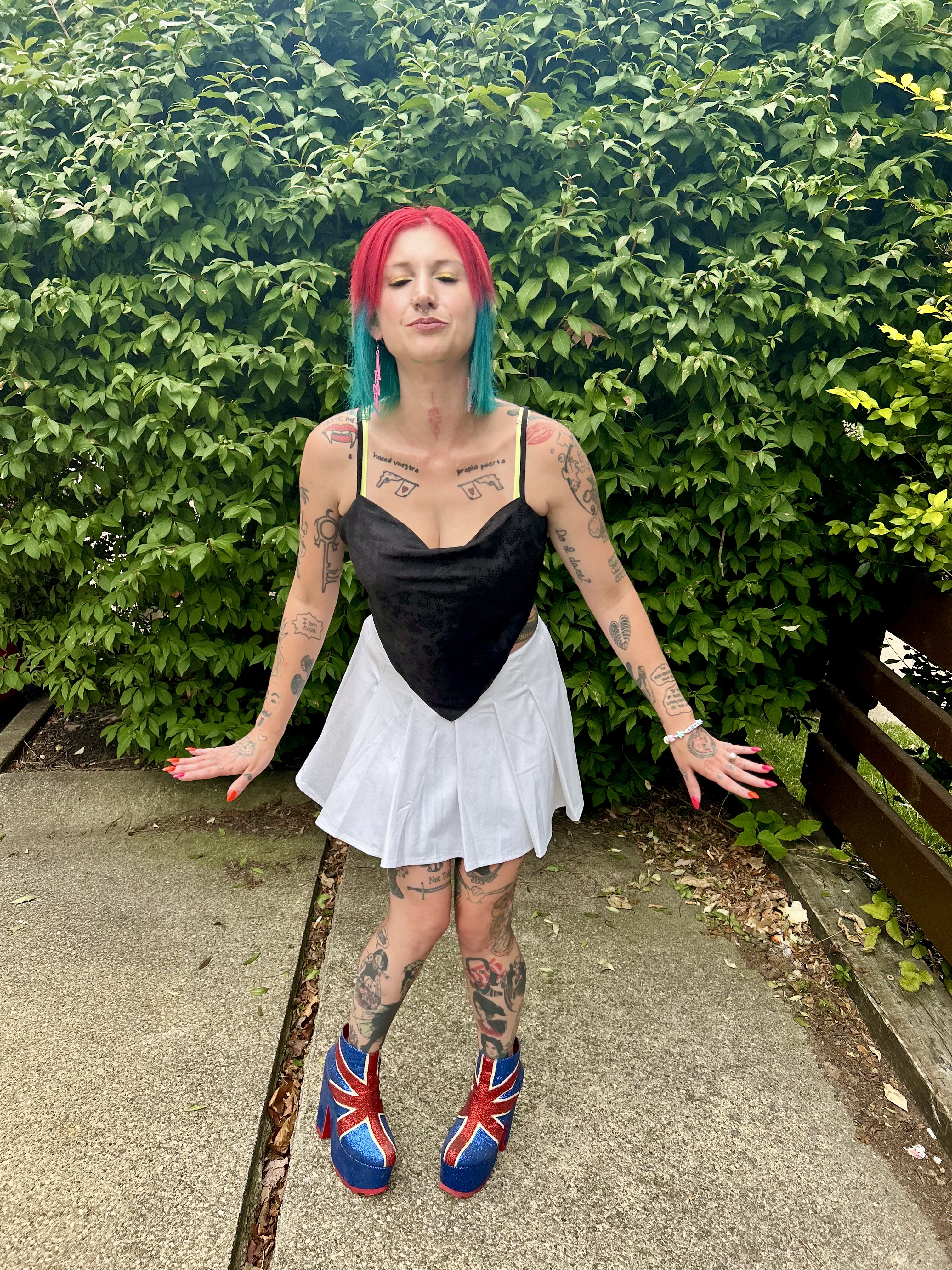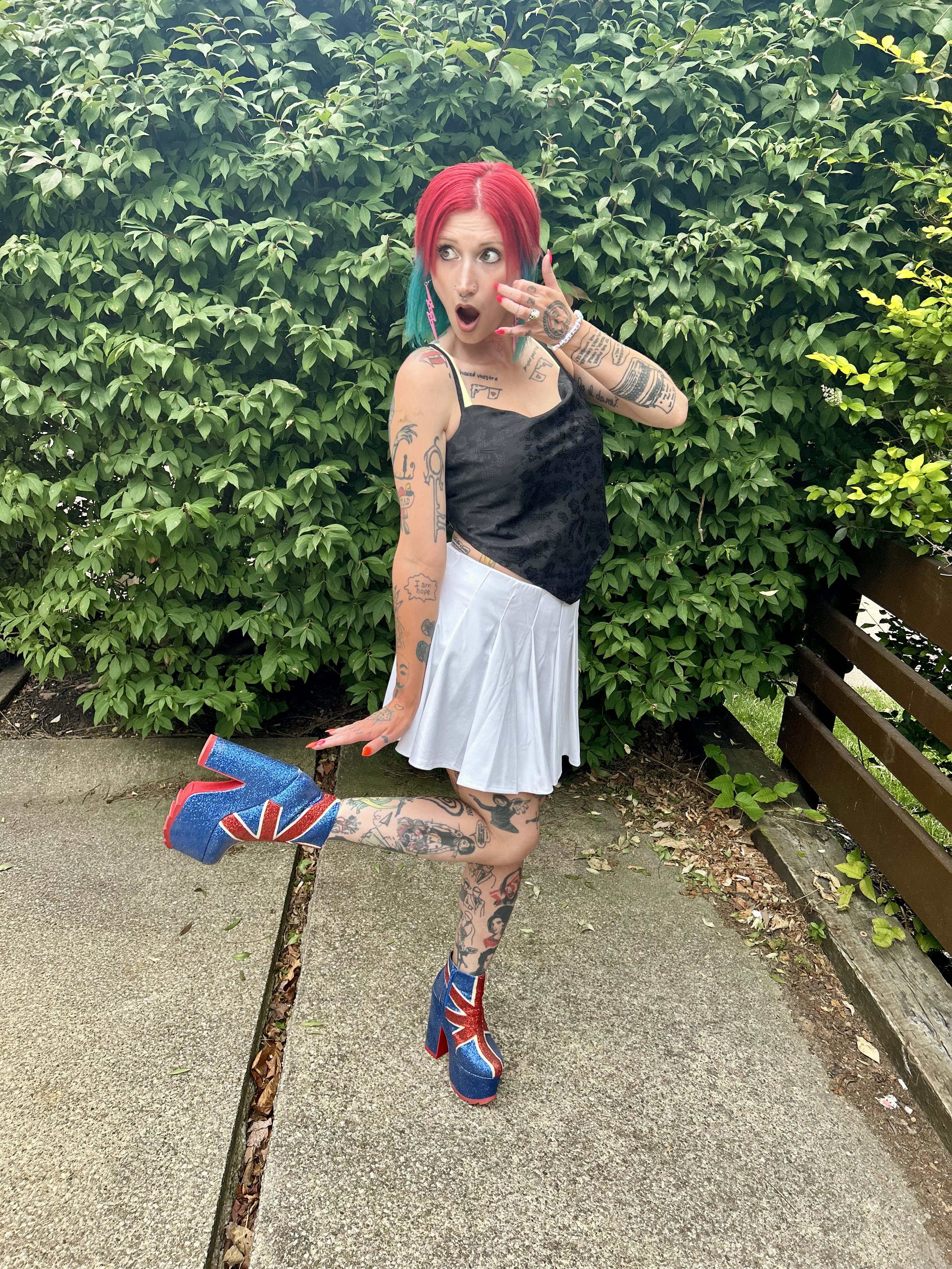 Hello everyone and welcome to the Blooper Reel from my Concert Cutie OOTD! These pics were taken before an absolutely fabulous night seeing The Struts and thank goodness we didn’t take them after because I was a sweaty mess. I love styling OOTDs for concerts because it provides the perfect opportunity to not only show out but stand out in the crowd. It gives you the chance to be bold, have fun, and put on a fit that you might not normally wear on a normal outing. My look to see The Struts was Spice Girls inspired and it is one of my favorite ones yet – I had to go full glam to be in the presence of glam party rockers! I put my best face and fit forward but in these pics, the face leaves a lot to be desired lol check it out: