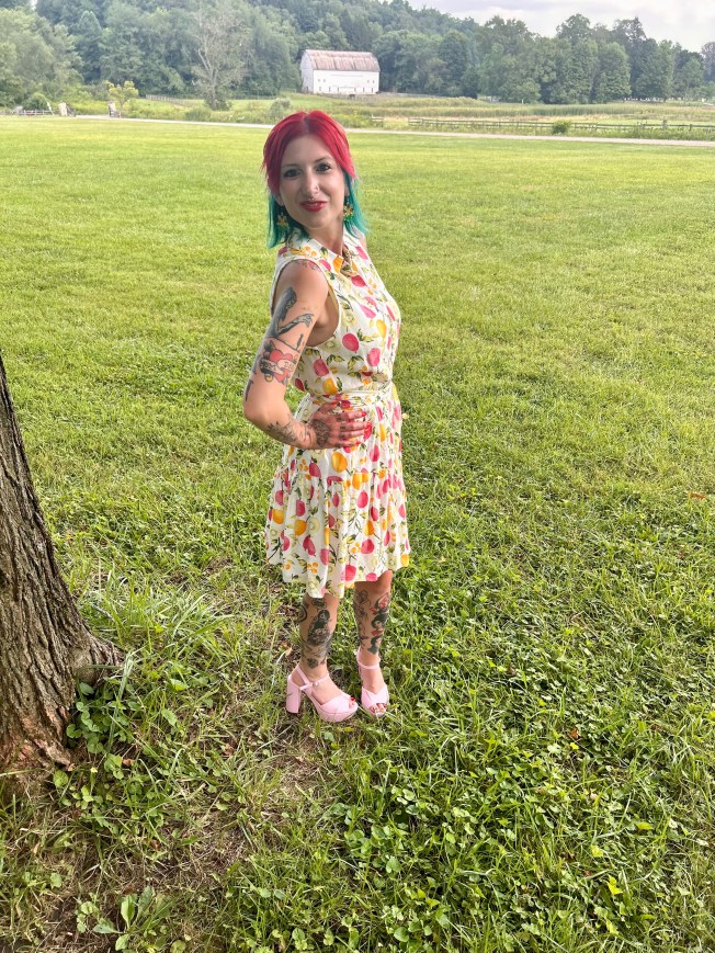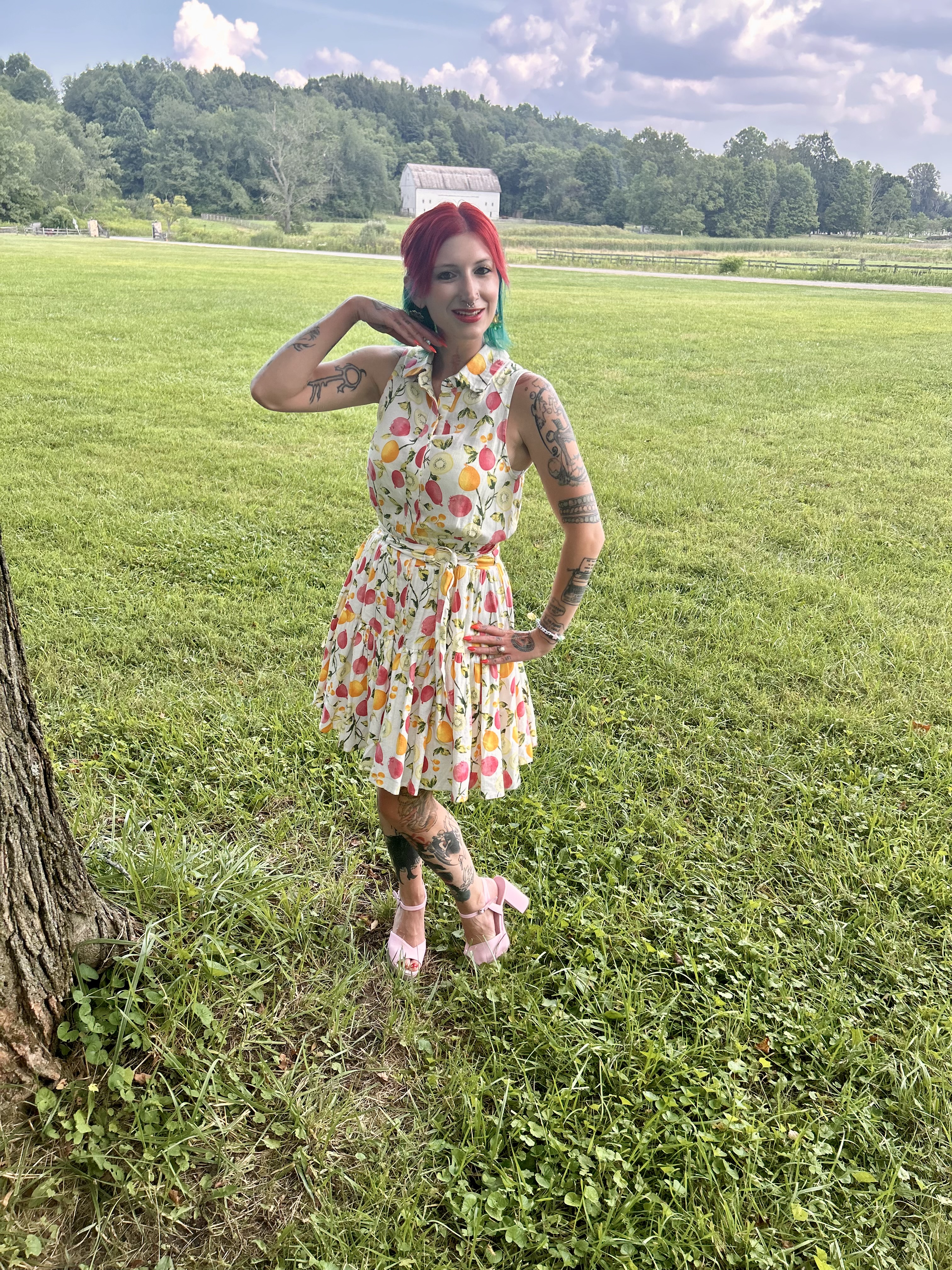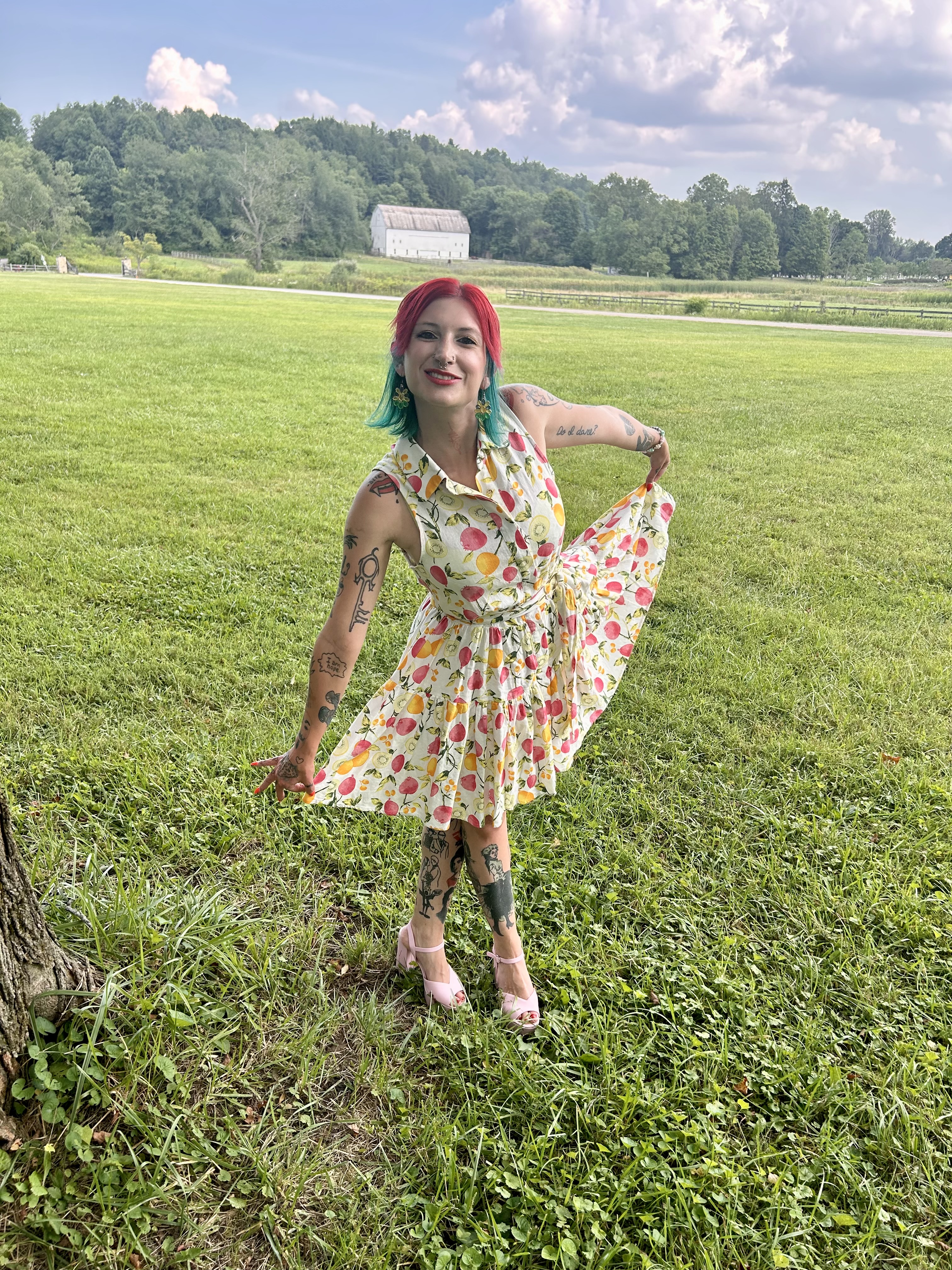 Hello everyone and welcome to the Blooper Reel from my Fruit Salad OOTD! This little look was worn to a beautiful summer wedding and it was the absolute best time. This is only the second wedding Johnny and I have attended in the six years that we have been together and all I can say is that I hope all of our other friends get married soon. If they want to, of course! Johnny and I truly come alive at a function and this wedding was so top tier. It was such a joy to be surrounded by all of our friends and so much love! I don’t have much love for these yikes shots, though! Check it out: