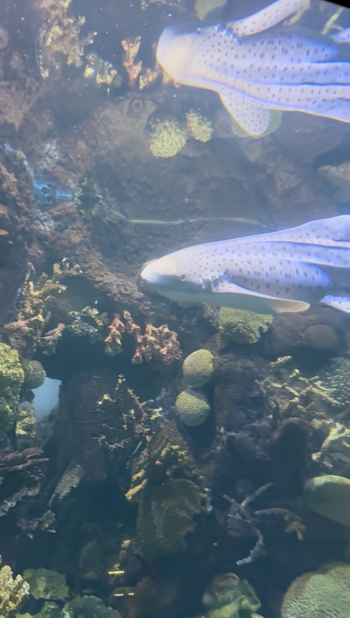 When you enter into the aquarium, you will find a touch tank for the kiddos and a few exhibits leading up to the piece de resistance. As you venture further, you are greeted by the huge tank that runs the length of the sizeable space from floor to ceiling. It was spectacular! We found several species of sharks, fish, and coral in the exhibit and myself and crew were amazed. To see the sharks gliding about, schools of fish traveling together, and a few cheeky fish playing hide and go seek in the coral was like having a view straight into the ocean. The tank was so big that we were seeing brand new things each time we stepped a few feet. Had this been our local zoo and not one two hours plus away, I think we would have sat on the movie theater style seats to kick back and enjoy the splendor. We had a lot of zoo to get through, though!