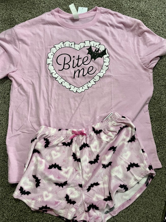 After the first portion of 5 Below was thoroughly shopped through, it was onto the clothing department where I got a set of pajamas for me and a couple of shirts for Johnny. This summer, I purchased an adorable short and cami top PJ set from TJMaxx and have been living in them. They are the only pair of non sweatpants pajamas I have so I was excited to find another pair that costed twelve dollars in total. I’m so excited to slip into the bat adorned fleece shorts and oversized tee that says Bite Me on it lol. I actually have a tattoo of vampire fangs that say Bite Me on my shoulder as well as a robe with the same sentiments so this PJ set really spoke to me. 🙂