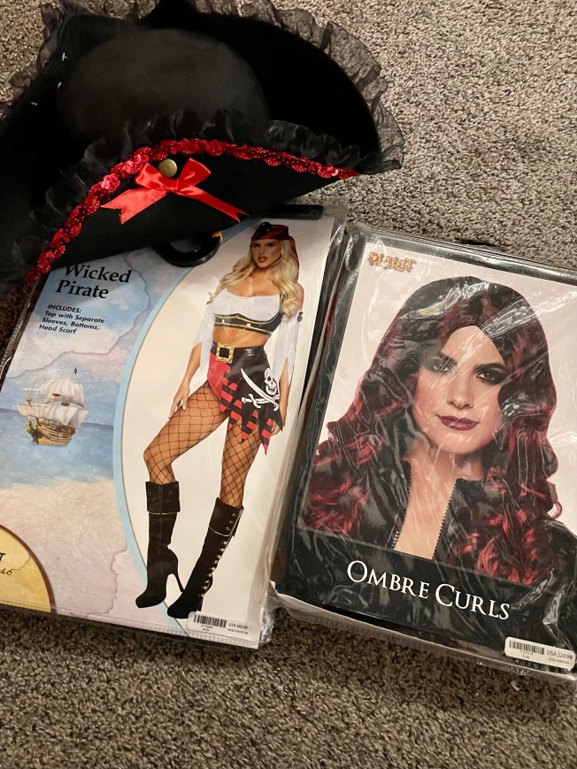 Howdy! I absolutely love getting dressed up for Halloween and revel in styling costumes as much as any OOTD. Johnny and I do matching costumes and this doubles the fun! This year we were workshopping an Alice Cooper and Cold Ethyl costume but decided against it as it would be one we would have to create on our own. Piecing together costumes can be pricey and we are really trying to save for a big vacation next year! We decided to keep it simple by being pirates and I REALLY like what we picked out. However, I do kind of wish that we kept with our original plan because our purchases at Spirit Halloween were CRAZY expensive. I genuinely think we could have done an ode to one of our favorite rockers for a similar price. That’s neither here nor there, though, because I know we are going to be the cutest pirates across the seven seas! Here is a sneak peek of my costume:
