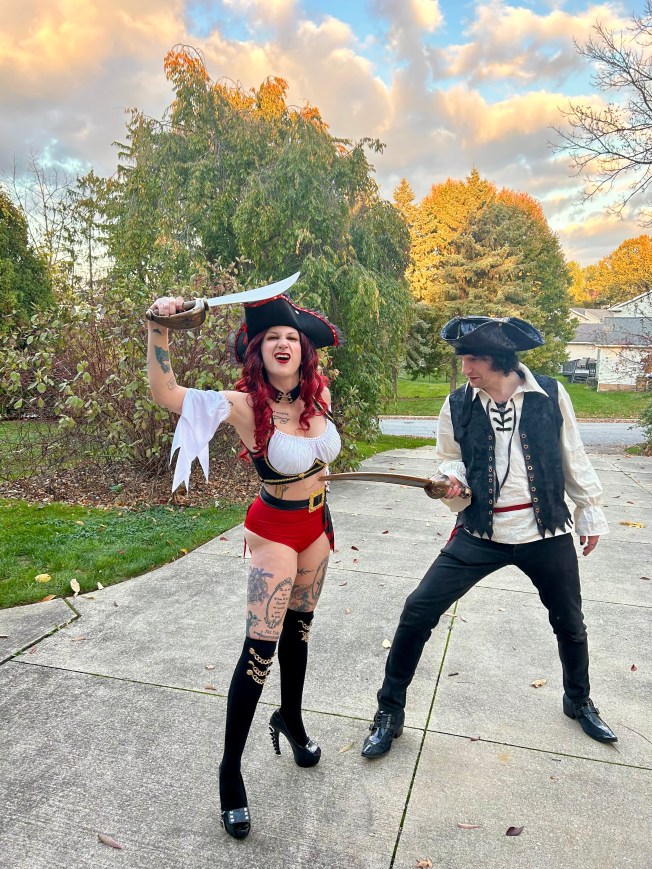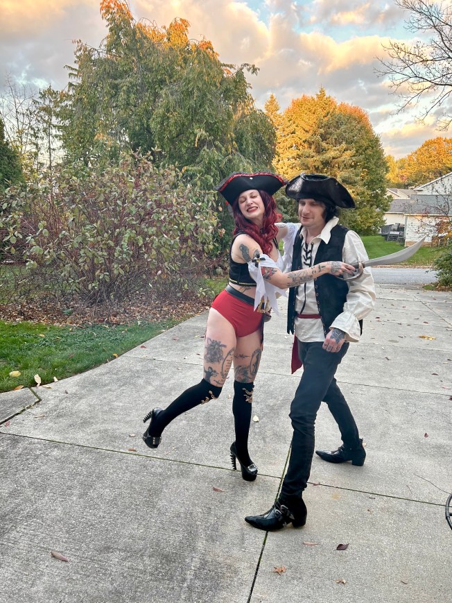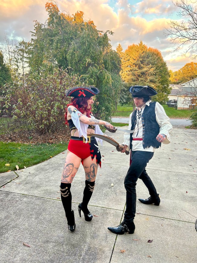 Avast and ahoy landlubbers! Can you tell that I am still obsessing over my Halloween costume?! Johnny and I revel in dressing up together every Halloween and always opt for matching costumes. We understand that pirates is such a basic ass costume choice but once we decided to go for it, we were all in. In both of our thirty something years of living, neither of us have been pirates before for Halloween and there was no better time than the present. If these pictures didn’t make it obvious – we enjoyed every minute! Check it out: