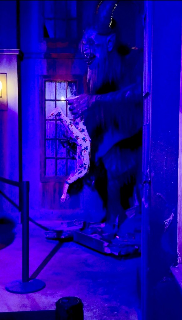 The Haunted Schoolhouse was definitely the main attraction and it was fantastic. It is set in an old brick building that is at least five stories tall and we got to explore all of it. Every floor was something different from scary nuns at school to a Texas Chainsaw Massacre-esque feature that I was most fond of. It is my favorite horror movie of all time! One of the coolest parts of this haunt was being banished to hell for the last floor by a nun. This floor took us into a dungeon style area complete with huge statues of Baphomet, cemeteries, creepy organ music, and exorcisms. After making our way down five floors, it felt like we were going into the abyss and it looked phenomenal. Just one floor alone of the Schoolhouse blew my past review out of the water and I couldn’t wait for more.
