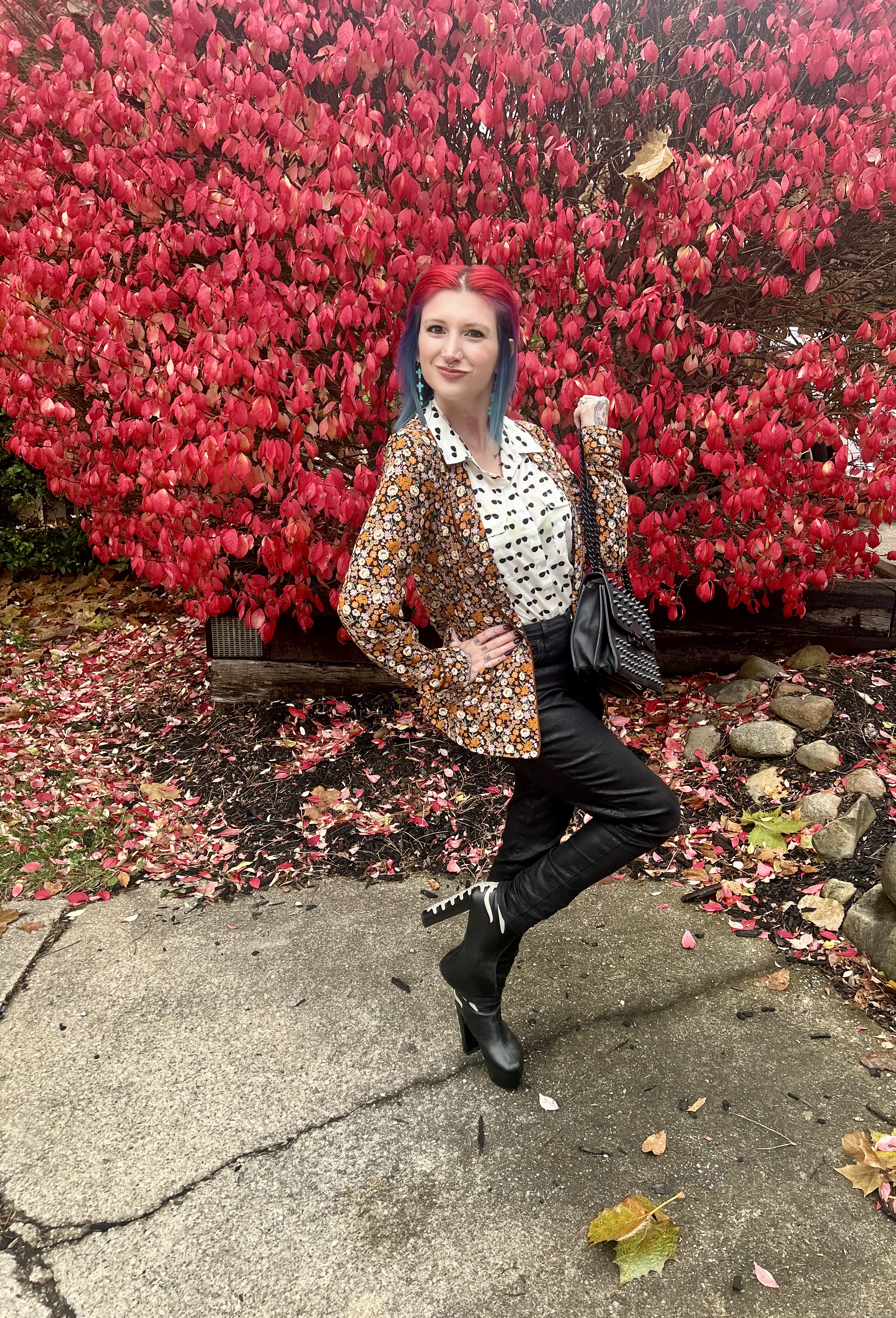 As I went shopping in my wardrobe department store, I had blazers on the mind and began this OOTD by browsing my options. I had been so focused on cold weather jackets that I haven’t been thinking blazers at all and honestly had forgotten about my Scotch & Soda one! Shame on me because this pajama style blazer is SO fabulous. I am totally there for that relaxed fit and the floral pattern with colors that just scream fall. This little number was definitely the move but what to pair it with?