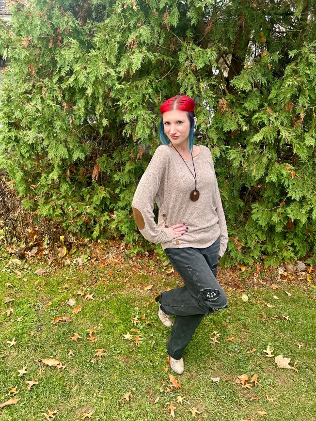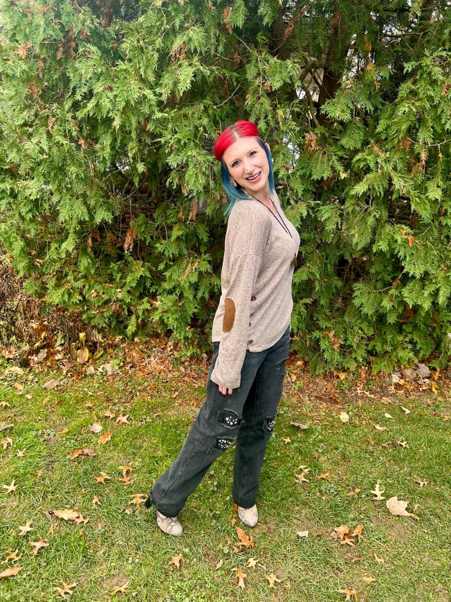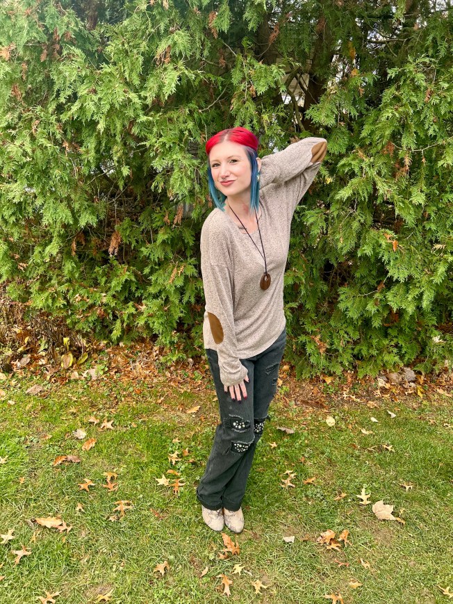 Hello everyone and welcome to a brand new OOTD here on lifewithlilred! This past Saturday I went on a fun little outing with my dad and Johnny to a lunch and vendor fair event. It was such a nice afternoon with my two favorite fellas! I knew both my boyz were going to keep it casual in their fashion which was fine by me because it was a go there, go home kind of day. A day that called for the softest sweater in the whole world with elbow patches to feel oh so perfectly fall! Check it out: