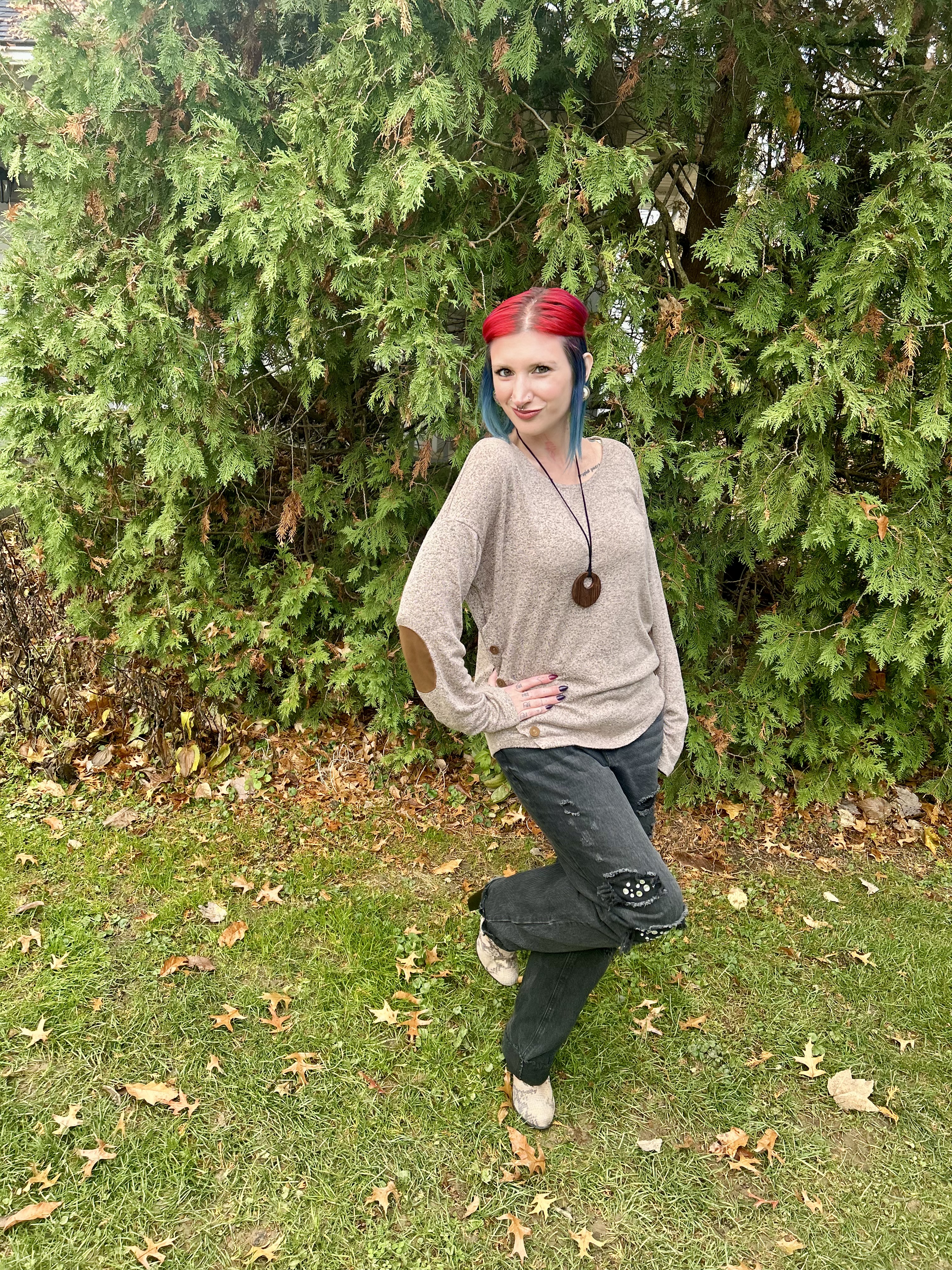 Hello everyone and welcome to a brand new OOTD here on lifewithlilred! This past Saturday I went on a fun little outing with my dad and Johnny to a lunch and vendor fair event. It was such a nice afternoon with my two favorite fellas! I knew both my boyz were going to keep it casual in their fashion which was fine by me because it was a go there, go home kind of day. A day that called for the softest sweater in the whole world with elbow patches to feel oh so perfectly fall! Check it out: