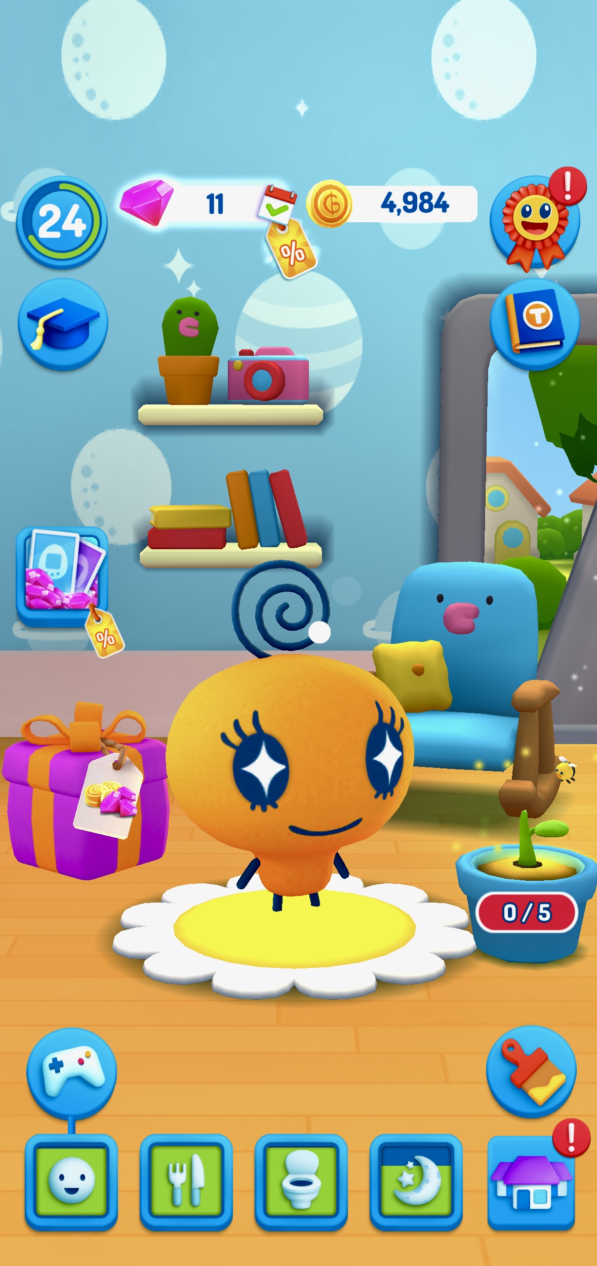 The premise of Tamagotchi is the same as any other substitute pet. Feed it, clean it, keep it happy. However, there is so much more to it than that. In the Tamagotchi app your pets can get jobs, go to school, and land an apartment. You can dress them up, decorate your house, and add fun things to the areas surrounding the shops like water fountains, picnics, and mini golf. Earning points to shop with is as simple as going to the arcade that has about fifteen games to pick from. I am especially partial to the Candy Crush style game as well as the ice cream scoop one. It reminds me of the Coney Island mini game in Mario Party!