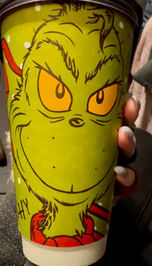 For the past year my Mondays have started with a Mickey D’s Diet Coke and that tune changed for the winter last Monday. It was eight degrees when I went to work and I needed warmth from the inside out. A hot Caramel Macchiato was the move and it was delicious. What made it even better was the silly Grinch cup that it came in! I loves me a seasonal cup and McDonald’s has definitely taken the cake this year. It was also impossible to feel Grinchy when I was de-thawing. 😀
