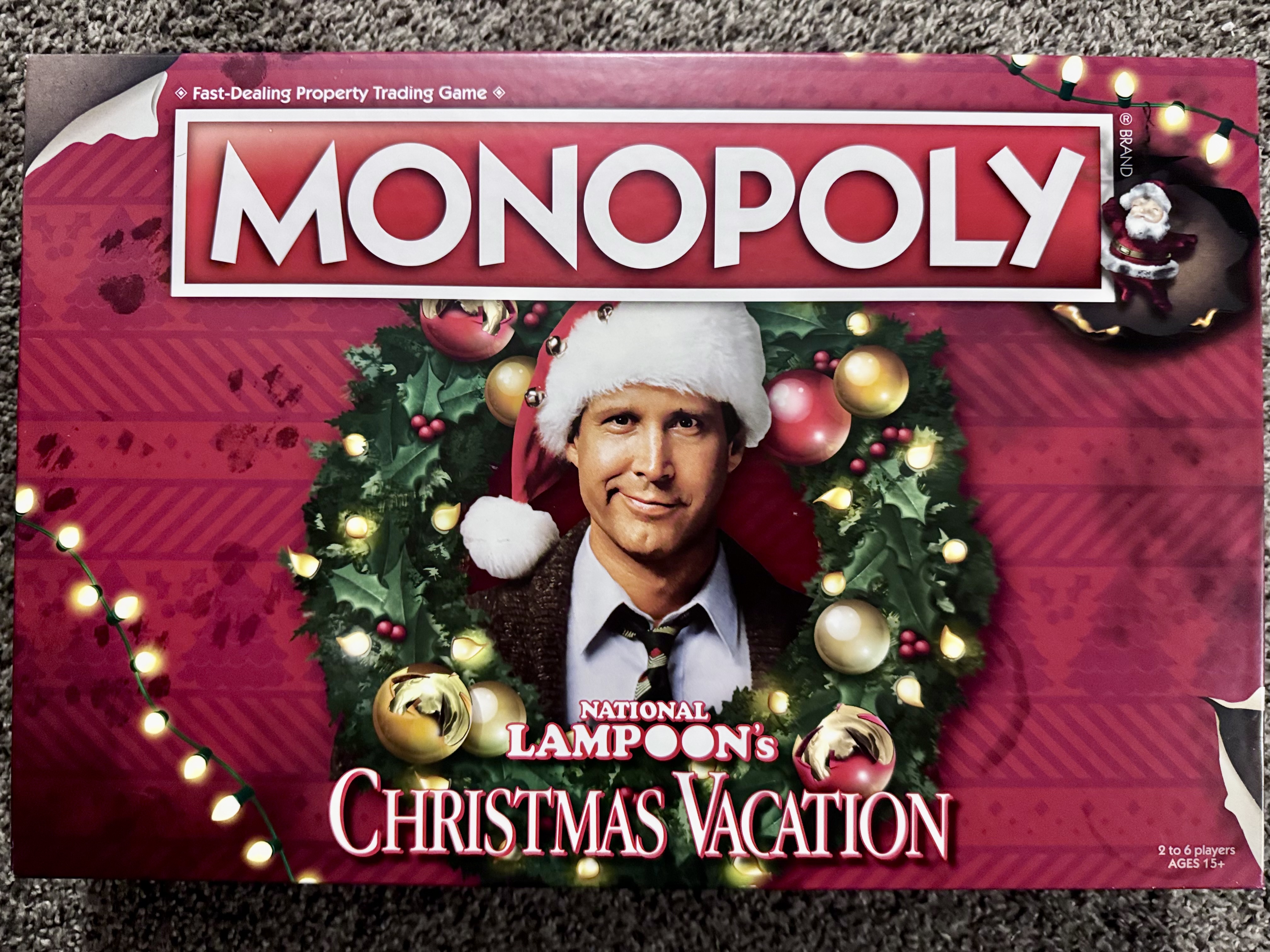 The piece de resistance of our presents has got to be the National Lampoon’s Christmas Vacation Monopoly board. Johnny’s family has watched this movie on every Christmas day since it came out in 1989 and it is our favorite tradition. It is never not funny and we basically recite the entire movie every time we watch it. This year, we will watch it together with his aunt on Little Christmas because we need her vocals for the “Hey, Santa Claus” song! In lieu of watching the flick, we played Monopoly instead and had a blast. Johnny ran away with it but I am confident we can band together and beat his butt next time!!! 😀