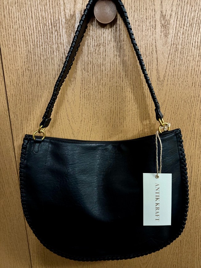 I haven’t bought a purse for myself since 2019. Yes, you read that right – seven years of no new purses. However, I never felt the need to buy more because I have so many and always prefer to spend my moolah on clothes and shoes. My tune definitely changed in the past few months, though! During the fall, TJMaxx had a gorgeous black purse that was embossed with skulls. I was obsessed but couldn’t justify the eighty dollar price tag. So, I waited for it to go on sale but someone with great taste snatched it up in the meantime. As much as I wanted it, it was no harm no foul and I vowed to eventually find a purse at a price point I was more comfortable with. I sure did with this little number by Antik Kraft for thirty-five dollars! That was much more like it. 😀
