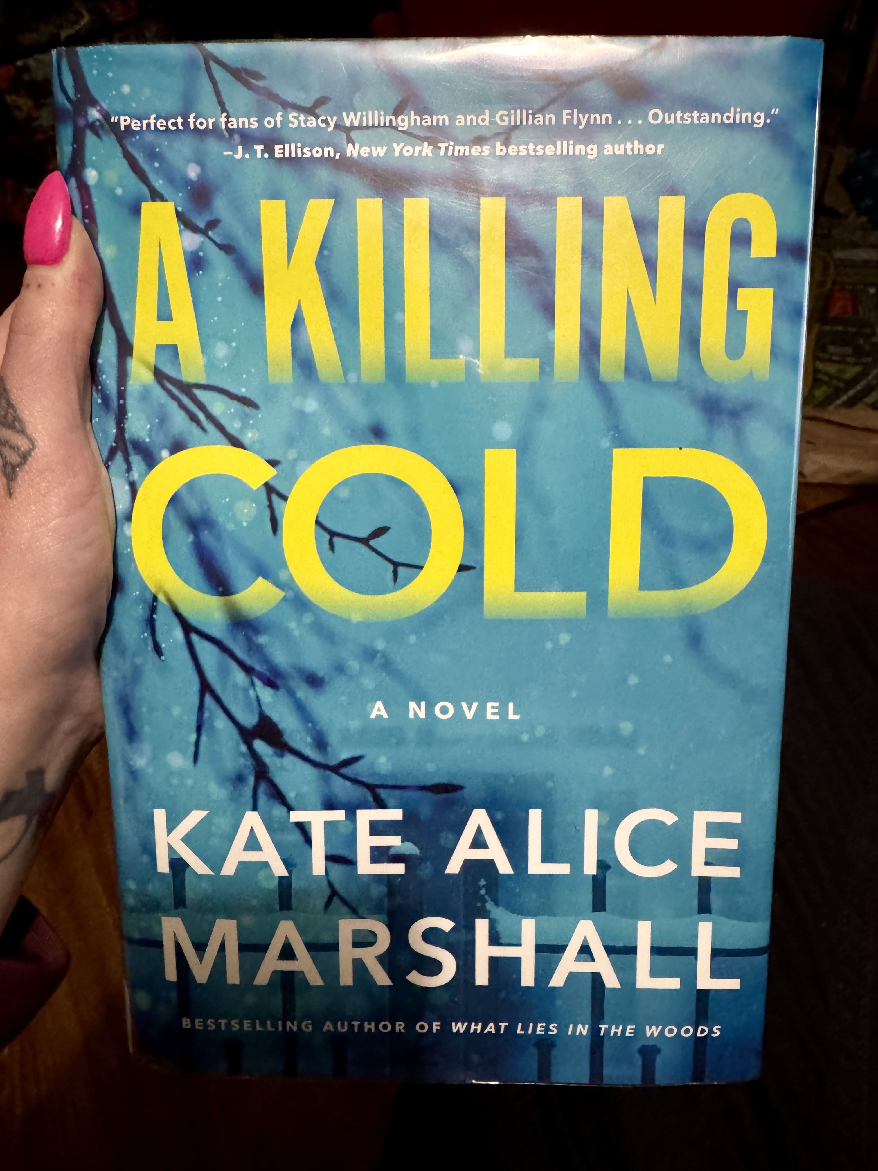 As I turned the pages, A Killing Cold became more and more convoluted and there came a point when I just had enough. With a quarter of the book left, I was damn near begging for it to be over. The poorly placed Red Herrings, overplayed dysfunctional family trope, and the constant shifting of blame was just too much. It felt like Kate Alice Marshall threw Every. Single. classic thriller writing tool at the wall to see what stuck. Sadly, few of these attempts helped push the painstakingly slow plot forward and I felt nothing but sheer relief by the time the last page was read. A Killing Cold was a total and complete dud.