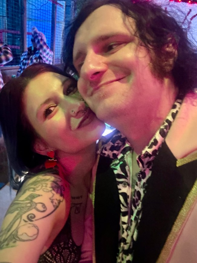 Once the haunt was over, we were deposited back into the dance floor area and were about to make our way home. Then, we ran into the people we mingled with during cocktail hour and figured it couldn’t hurt to stay for one more drink because the party was jumping at that point. Pop hits were playing, the dance floor was packed, and the guests and character actors alike were all having a blast! While Johnny and I had an awesome time, there was one person we know for certain that had the best time of all. There was this one actor who was literally getting paid to spank people with a paddle for the evening. And the answer is YES, we did partake. And, yes, my fanny was on fire the following day. Hey, you have to go a little crazy on Valentine’s Day lolol!