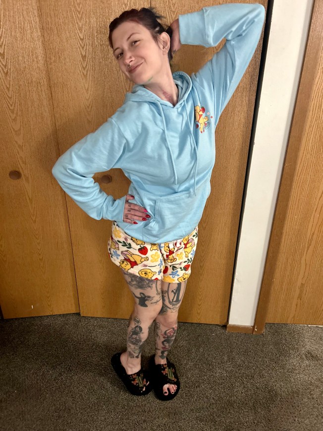 Hello everyone and welcome to a Pajama Party OOTD! I was so excited to start a new job last month and couldn’t help but treat myself to some new duds from 5 Below – AKA the perfect spot for all of your little treat needs! I decided a year or so ago that I was desperately lacking in the pajama department and 5 Below offers the cutest and most comfy PJs for a song. In fact, I have yet to find cheaper at TJMaxx. During my past haul, I couldn’t say no to a pair of their fuzzy pajama shorts in an adorable Winnie the Pooh motif as well as a hoodie to match. The hoodie is way too sweet to just save for bed though and I am wearing it as I type this to go to work in! Take a look at this cozy little combo that was just twenty-two dollars in total:
