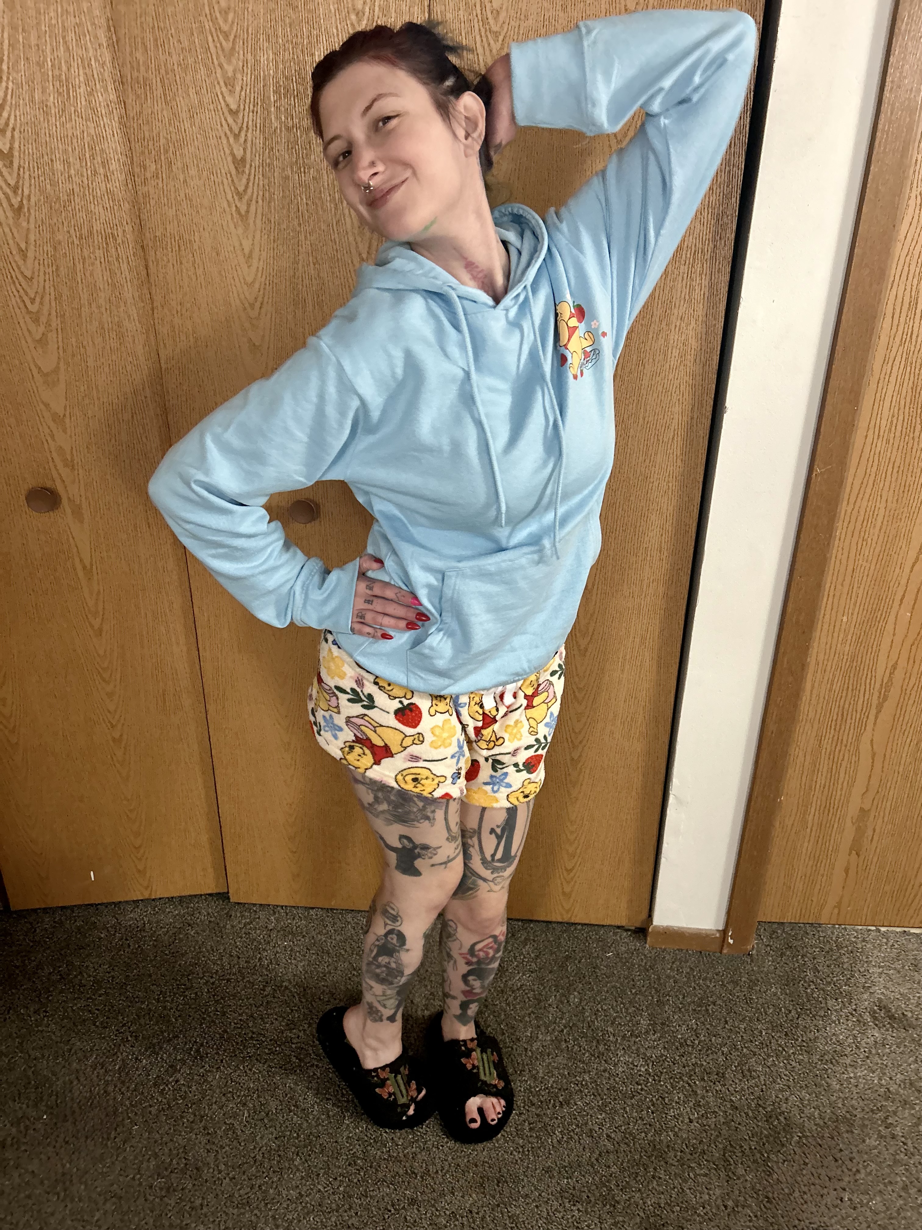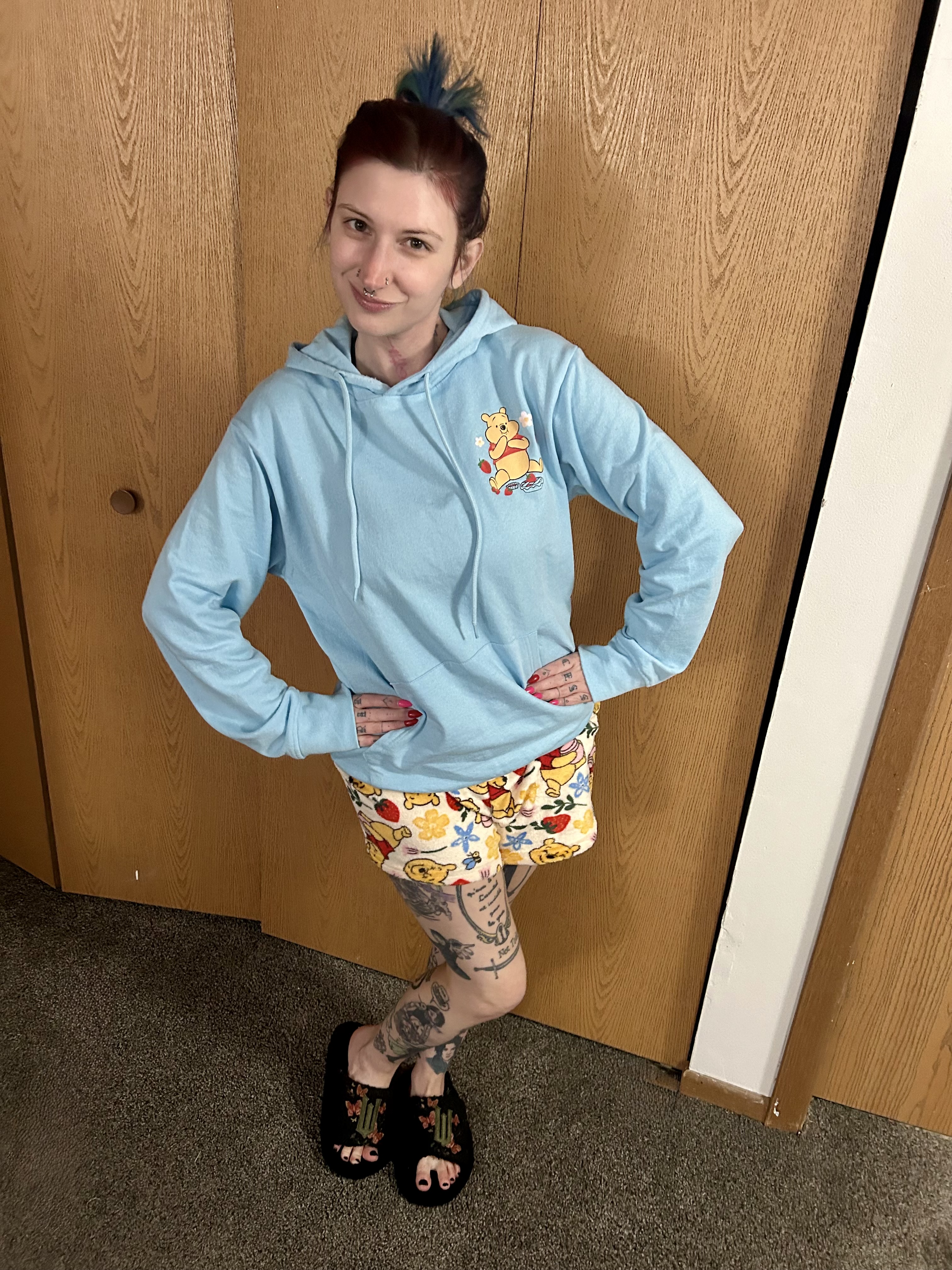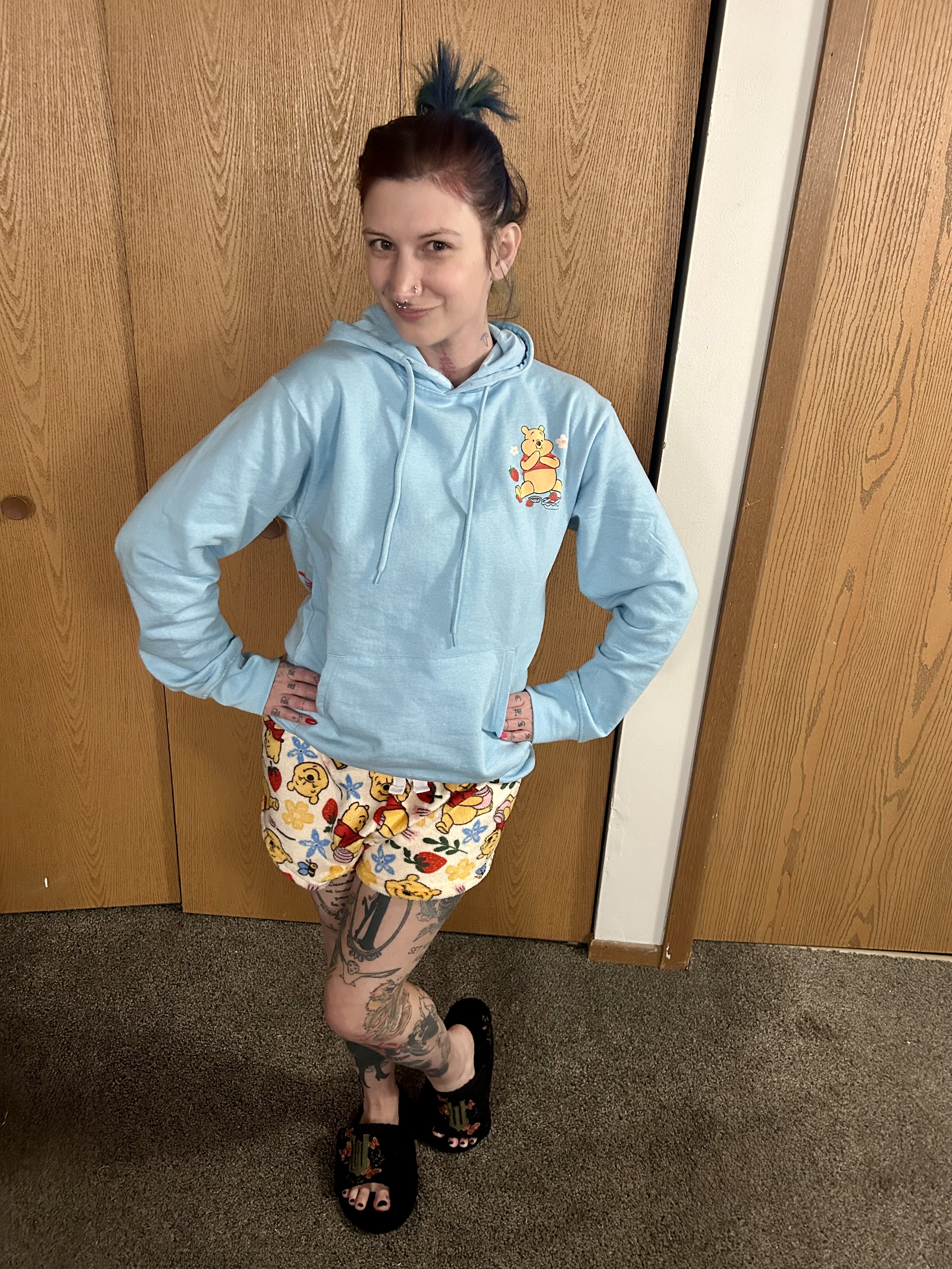 Hello everyone and welcome to a Pajama Party OOTD! I was so excited to start a new job last month and couldn’t help but treat myself to some new duds from 5 Below – AKA the perfect spot for all of your little treat needs! I decided a year or so ago that I was desperately lacking in the pajama department and 5 Below offers the cutest and most comfy PJs for a song. In fact, I have yet to find cheaper at TJMaxx. During my past haul, I couldn’t say no to a pair of their fuzzy pajama shorts in an adorable Winnie the Pooh motif as well as a hoodie to match. The hoodie is way too sweet to just save for bed though and I am wearing it as I type this to go to work in! Take a look at this cozy little combo that was just twenty-two dollars in total: