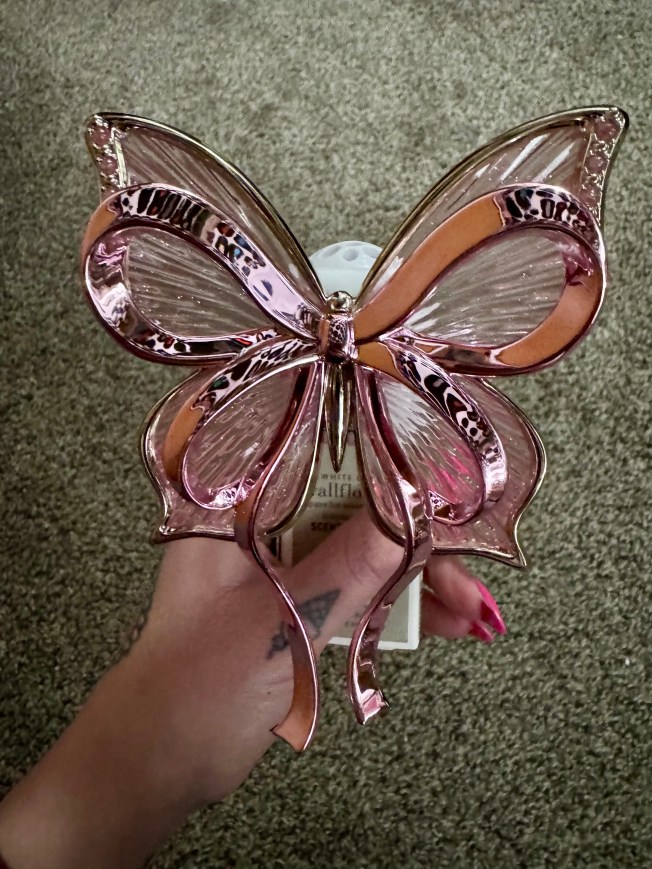 Not only do the wallflowers provide divine fragrance throughout my apartment but they are so practical too. Their light up options make for an excellent nightlight and my nieces really appreciate that when we have slumber parties. Bath & Body Works had plenty of ultra cute bulbs to pick from and I was enamored with what one of the salespeople showed me after she said I was giving “snake vibes” lol. It was the prettiest emerald green snake with gemstones all over it! I absolutely loved it but I knew my nieces would say otherwise so I opted for the pink butterfly or should I say bowterfly instead. This ballet slipper pink butterfly is just so darling and a friendly reminder that spring is almost here! It looks great on its own but the light up function adds a touch of fairy magic. I knew my nieces would be all about my selection but after seeing it in its glory at home, I think I might be about it more. 😀