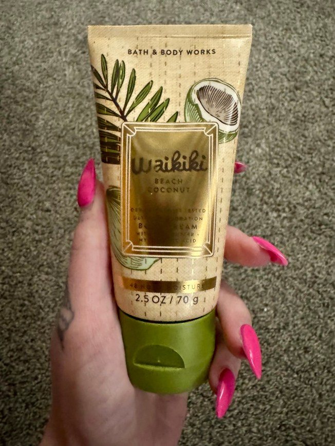 For my freebie, I went with a travel size body cream in Waikiki Beach Coconut. When I score a free item, I like to throw caution to the wind and pick out scents that are not my usual go tos. Sometimes it works out, other times not so much. But, even if I don’t like the fragrance it’s not like I will be using it for forever! The past few times I had a freebie coupon I was unimpressed with the travel size selection and my sentiments were the same this time around. I had tried everything available already! Out of the handful of options displayed, Waikiki Beach Coconut was my fave. In my opinion, no coconut scent will ever be better than that of The Body Shop’s. While Waikiki Beach Coconut is nice, it also has some floral mixed into a very pure coconut fragrance which I could definitely do without. However, you can’t beat free!