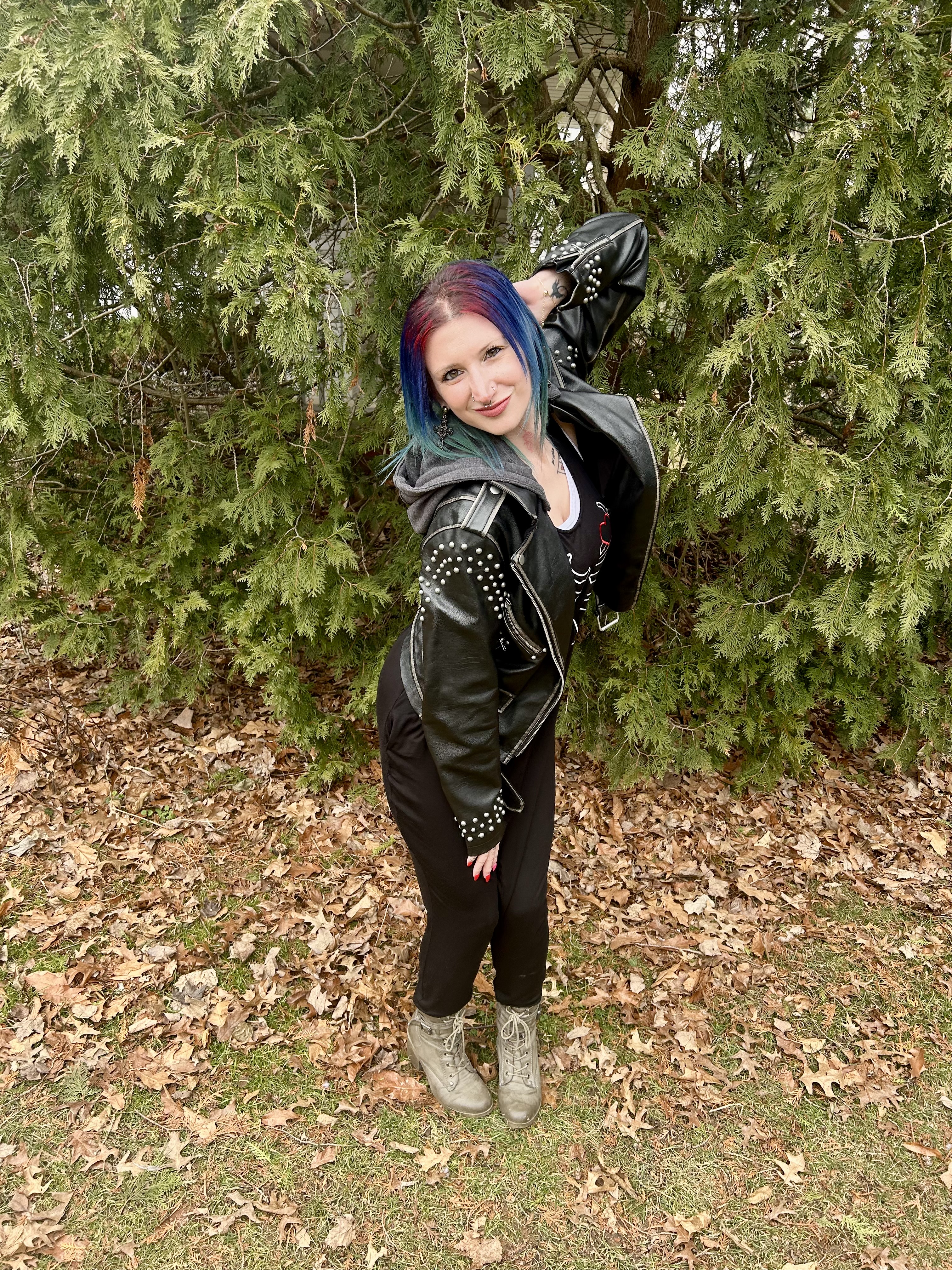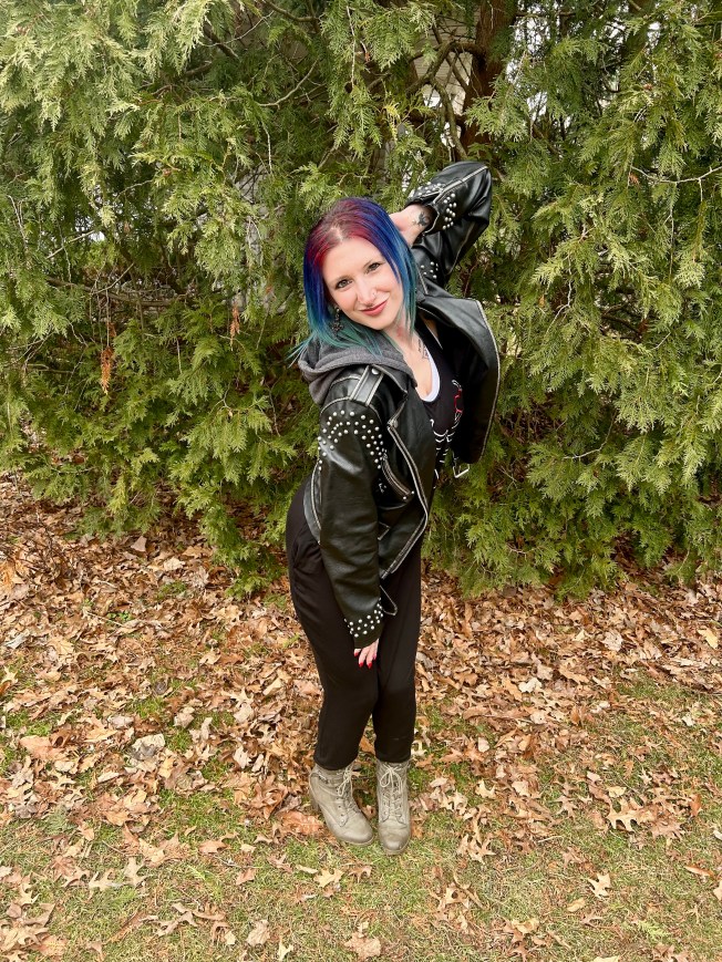 To wrap this look up, I went for a pair of army green heeled combat boots by BCBG. These boots are so sturdy and were made for walking! That’s just what I did in them and I could have kept on going for miles. Well, maybe two or three lol and they added a muted pop of color to an otherwise All Black Everything OOTD. For jewelry, I didn’t want to be bogged down with anything other than earrings and chose a pair of black gemstone adorned crosses. These were purchased at an adorable boutique in Marietta, Ohio and are a lovely reminder of an amazing Valentine’s Day weekend Johnny and I spent there! ❤