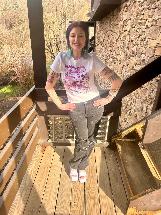 Hello everyone and welcome to a brand new OOTD here on lifewithlilred! Johnny and I had such a nice weekend and part of it came from celebrating our birthday girl niece. I got to spend a wonderful morning all together with my girl squad and I knew exactly what I wanted to wear – my K-Pop Demon Hunters cropped tee! The girls are avid fans of that movie and, damnit, so am I. It is SO good. The music is SO catchy. And I am never going to turn down a dance party to the soundtrack! Take a look at this fun little fit and let’s discuss: