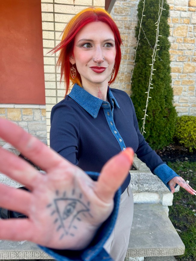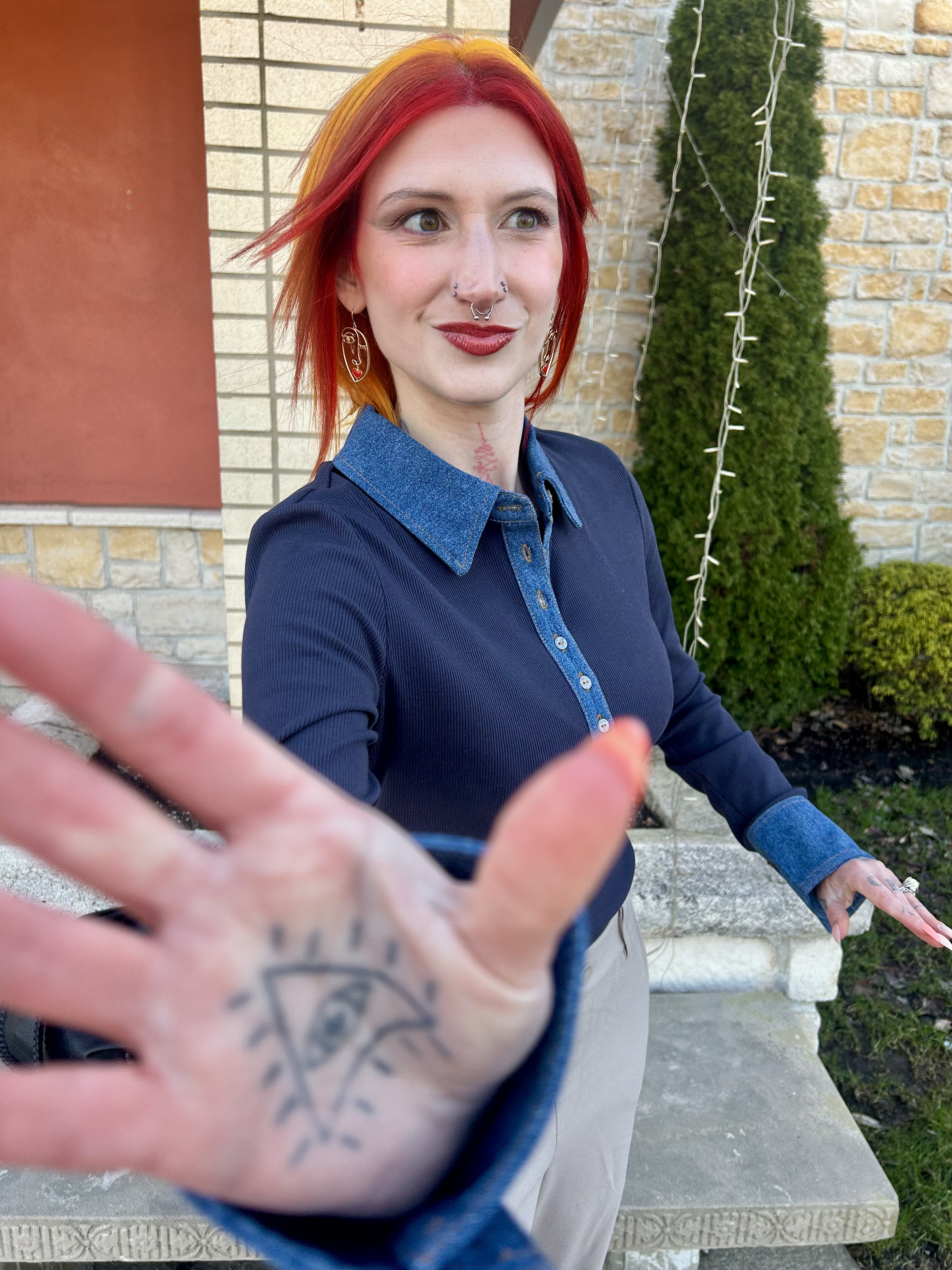 Prior to my appointment, I asked my pal if she wanted me to wear anything specific and she said to wear whatever and she’d make it work. I decided on a 70s chic outfit and was so curious to see her takeaway from my look. What she landed on was a phoenix inspired MOTD and it absolutely blew my mind. I’m not going to lie, I was initially a little worried as the eye makeup was SO different than anything that I could manage on my own. Then, I saw the full effect and ate those worries right up. This MOTD was giving David Bowie a la Thin White Duke and I was feeling myself SO hard.