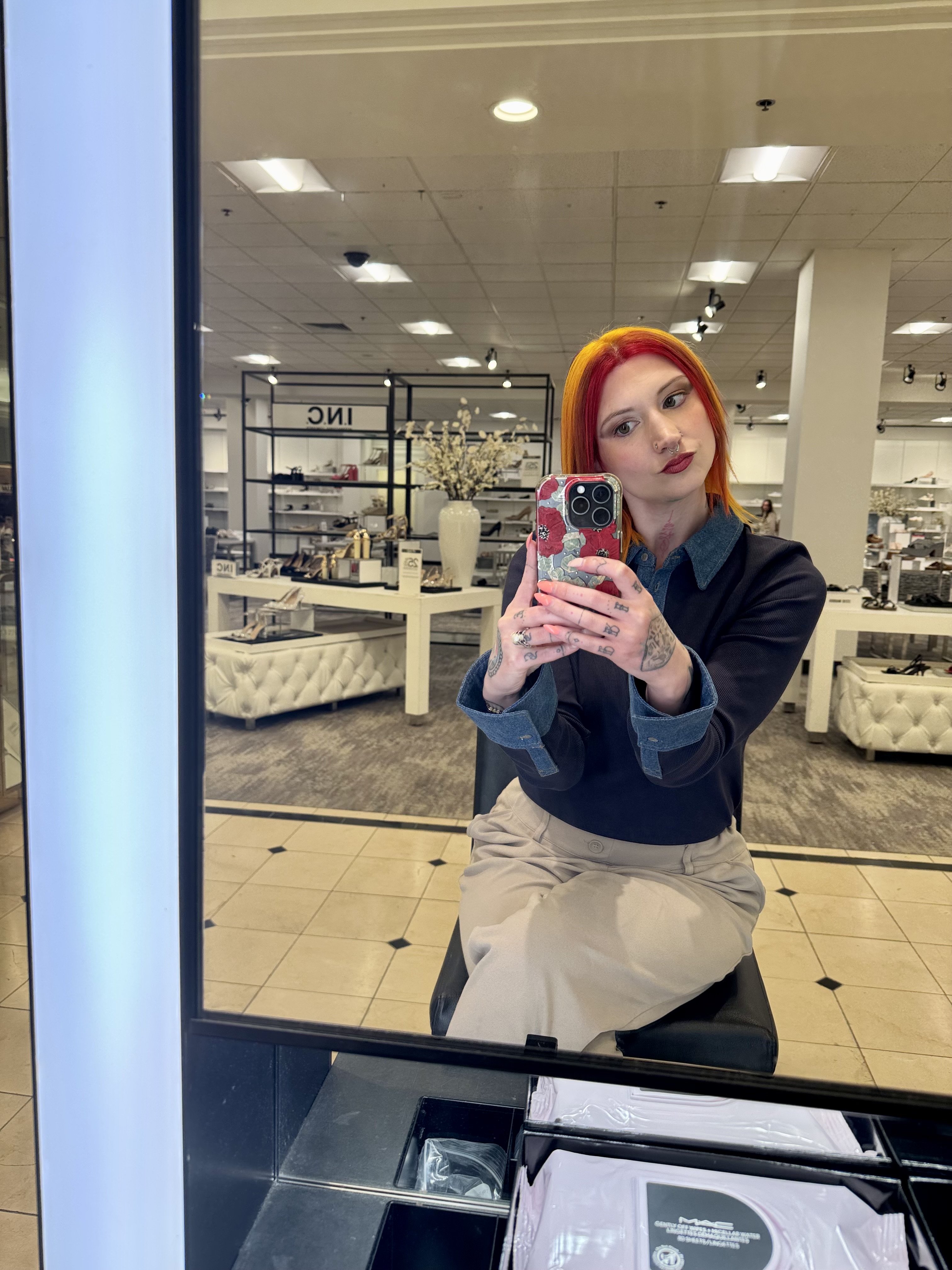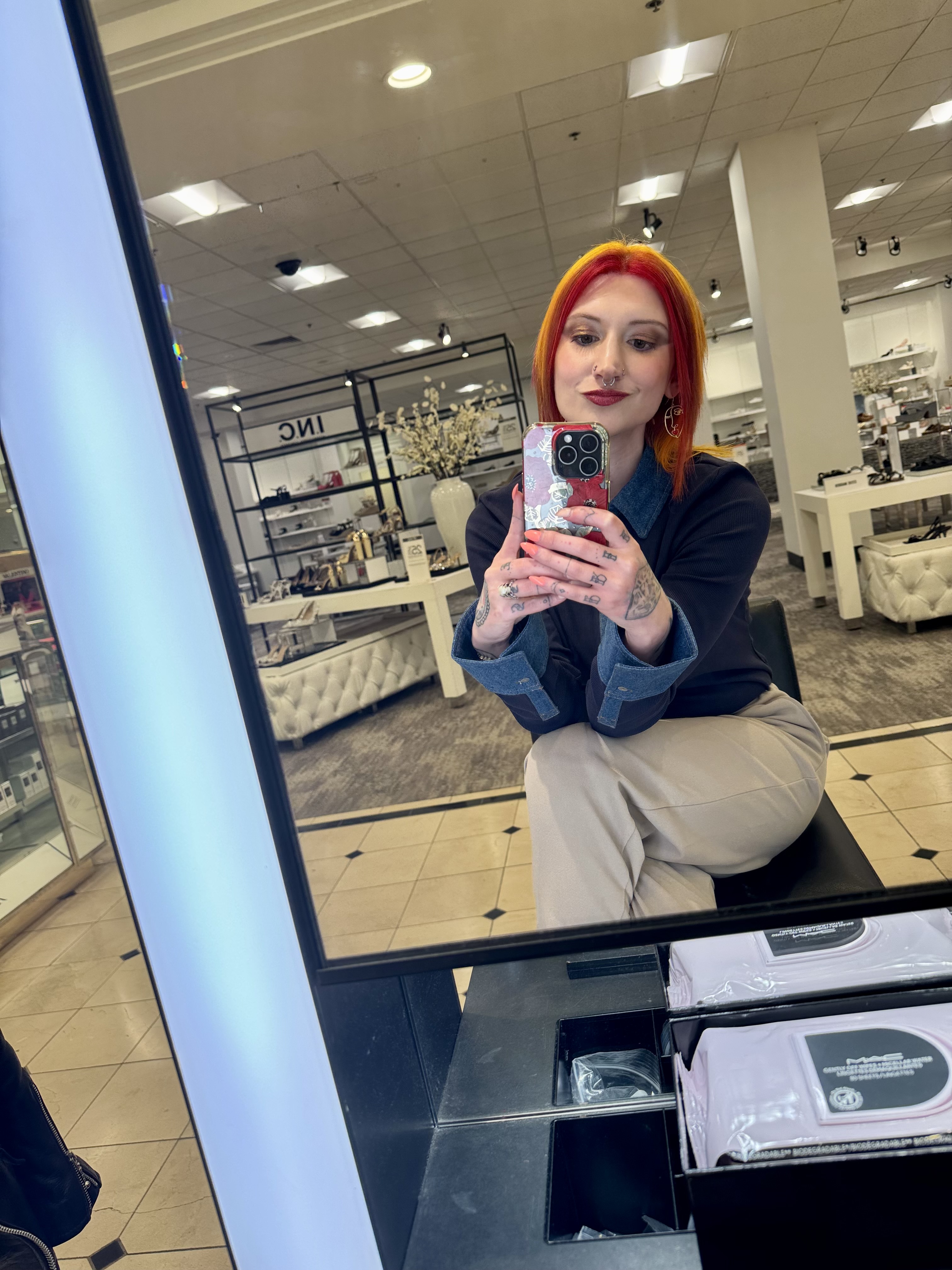This makeup session was a blast from start to finish but it was, first and foremost, so impressive. As soon as I walked to the MAC counter in Macy’s, a vision came to my artist and she expertly saw it through. Every step was so precise, each color used was a perfect match, and she applied it like it was nothing. Not to mention she was applying it while we were chattering away too! I have a feeling that there will be many more collaborations in store for us and be sure to peep my TikTok at lilred6794 for more from this experience!!