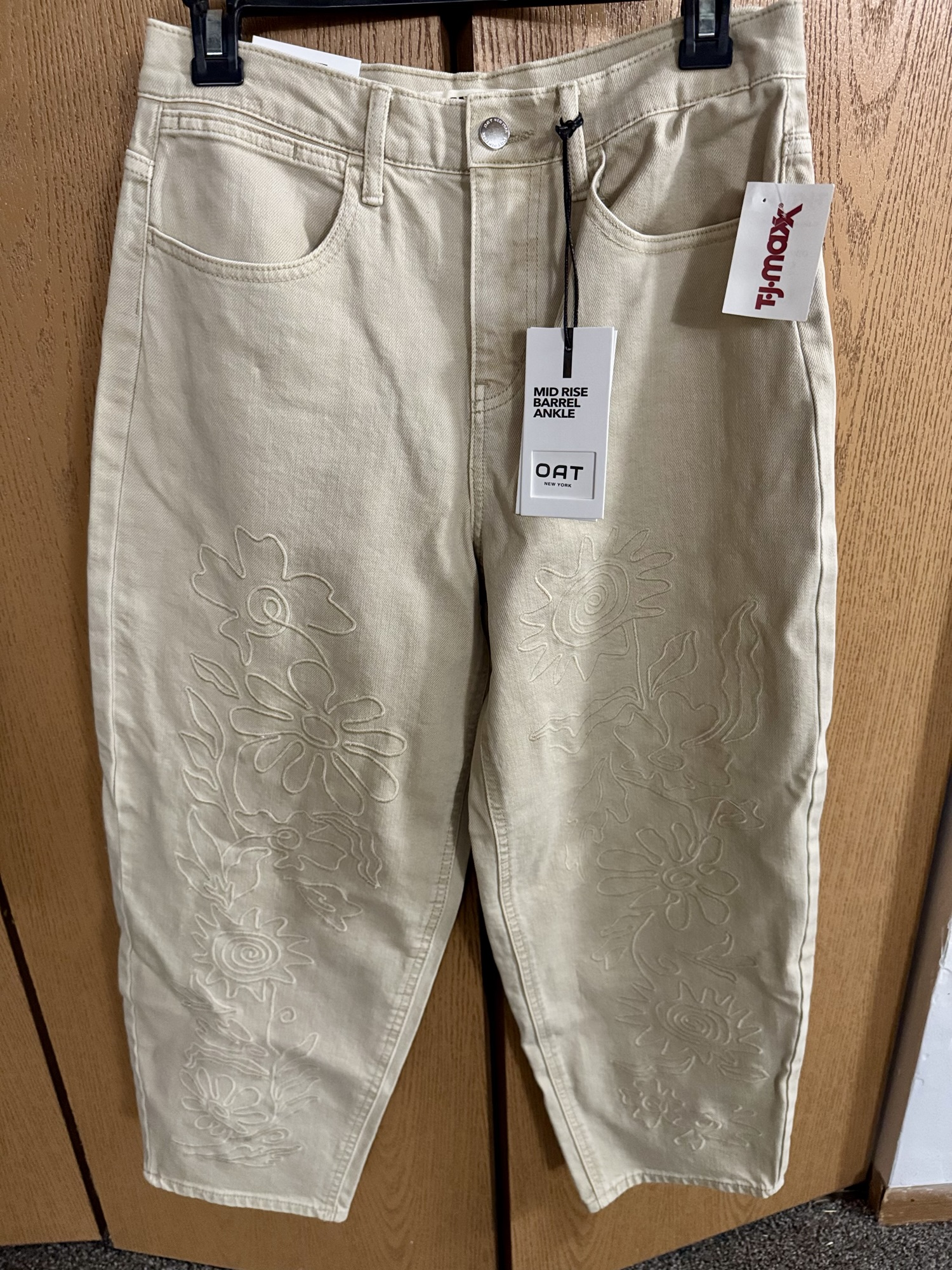 Hi! This past Tuesday my mom and I had a fabulous shopping trip to TJMaxx to scope out some prezzies for my birthday girl sister. And, of course, I had to scope out some treats for myself too! Spring has officially sprung at TJs and I was hoping to find a few new pieces to shake up my warm weather wardrobe. It’s always nice to have a couple of new things when the seasons change! I walked away with a gorgeous top and a funky pair of pantaloons by Oat New York. I am just as shocked as you are that these are not black skinny jeans! Take a look: