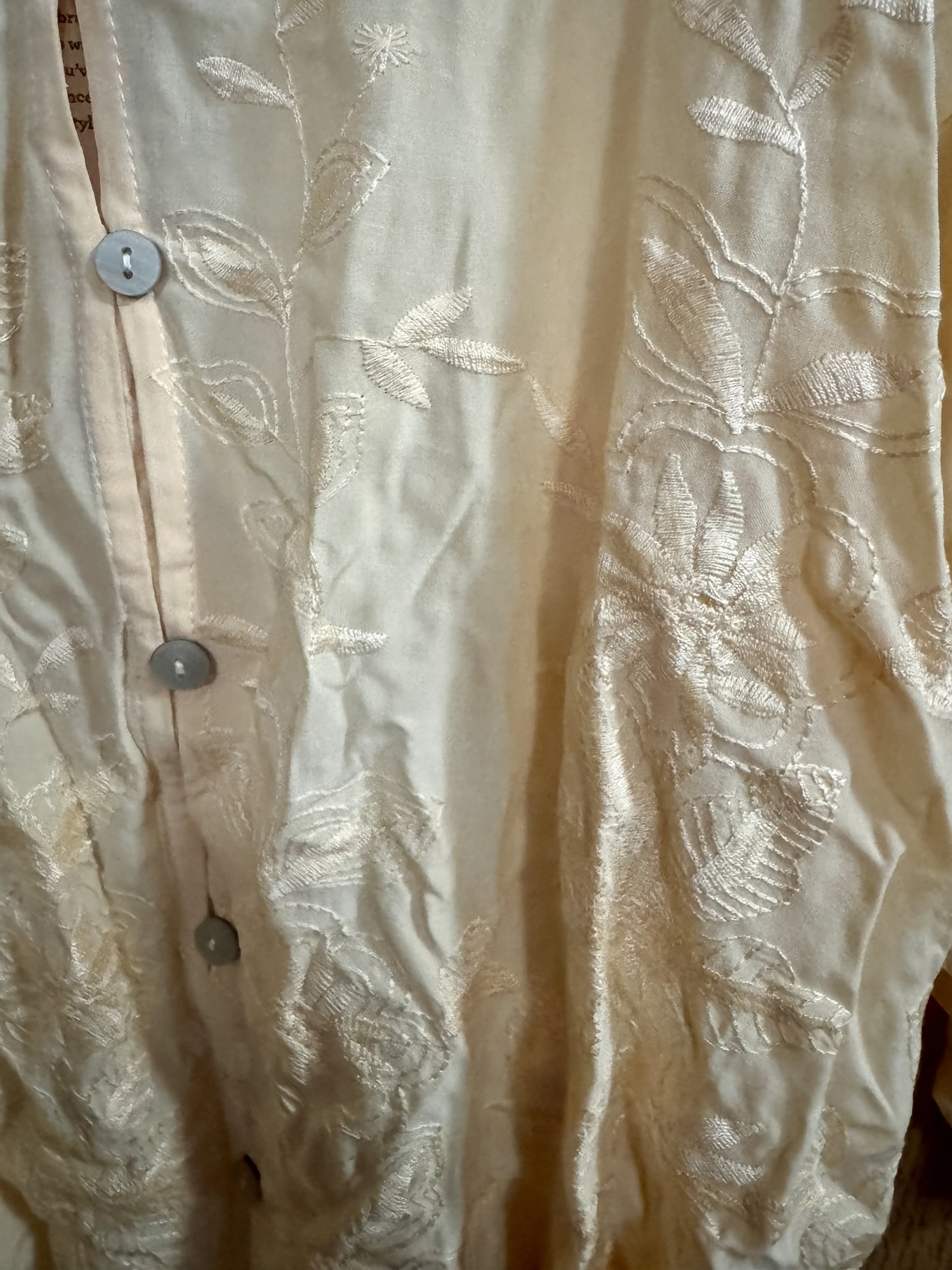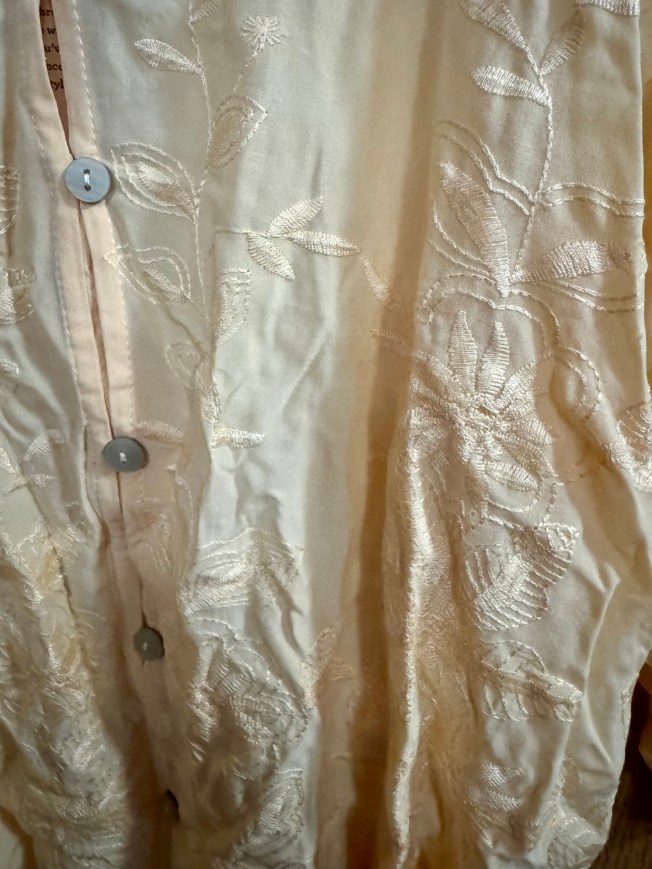 This top is such a light, breezy material which I love for spring and summer. What I don’t like, though, is when gauzy fabrics are too billowy and hide my figure. That is not the case with this top in the slightest. Despite the movement that the material provides, it fits close to the body while still allowing for a little wiggle room. And, of course, I can’t get enough of that embroidery and the rouching on the neckline and cuffs. You all know I am a sucker for anything embroidered! I can see myself sporting this top with a sweet pair of denim shorts for play and tucked into flouncy skirts for a date night look. Stay tuned for a brand new OOTD featuring this pretty little something soon!
