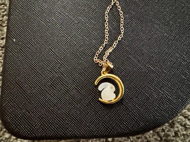 The next gift I unwrapped was a double gift – a travel jewelry case with the sweetest bunny necklace tucked inside. Perfect for everyone’s favorite bunny mom! I literally clutched my pearls when I saw the little bunny atop a gold moon and I have a feeling I will be wearing it every day. I also know that my travel jewelry case will be getting excellent use too. Johnny and I are going on a BIG trip this year (More on that later) and I now have something to safely store all my bits and baubles. It will be like a hug from my bestie when I take it on our travels. ❤