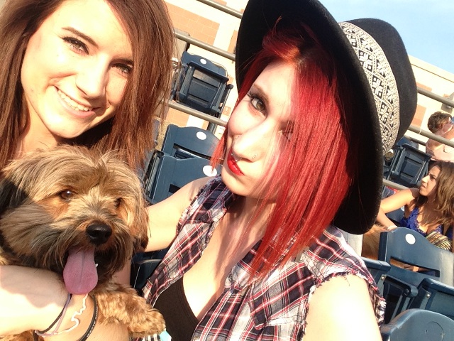 Heyyy everyone and happy Thursday! I had a really fabulous night last night with my sister Kristen and her satanic dog Winston at Bark At The Park. Akron, Ohio’s minor league baseball team the Rubber Ducks play at Canal Park in downtown Akron and two times during the summer, you’re allowed to bring your pup to the game with you. Last night was obviously one of those nights so we got ourselves ready, packed up the devil dog, and was on our merry way! Now you guys may be thinking “Winston looks so cute, there’s no way that he’s as bad as Sarah says he is”. BUT on contrare – he’s literally the worst dog ever! Yes, he’s cute but he’s the biggest yippy yappy brat in the entire world! He loves to bite, bark, growl, and just be flat out annoying. The only person who he likes in my family is Kristen so the rest of us our left to suffer at the paws of a twelve pound dog. SHAMEFUL! Anyways, we got to Canal Park with Winston in tow, purchased our tickets, and found our seats in the “dog friendly” section of the park. Throughout the walkway there were huge kiddie pools filled with water and loving owners walking their tiny, small, medium, and flat out huge four legged (and sometimes three legged!) friends. Winston had a blast getting his hump on and smelling a bunch of butts and Kristen and I had a great time too! We weren’t paying attention to the game at all, so I couldn’t tell you anything about that but we had an awesome time enjoying each others company, petting dogs, looking at dogs, being a dog, and taking a million batrillion selfies! Take a look: