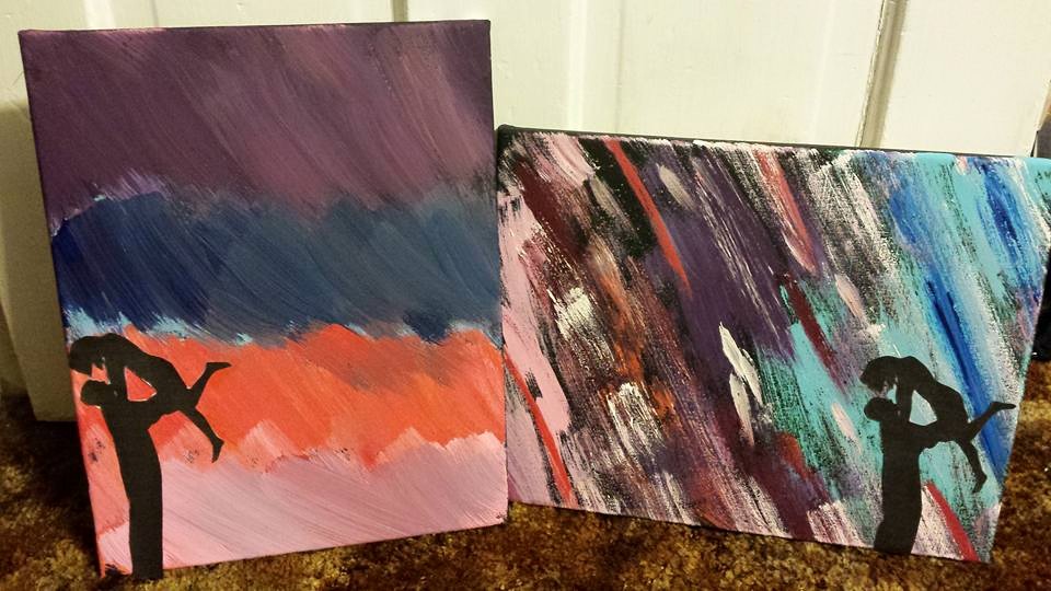 Once we returned from our break we got to work on the second half of our painting. Our hostess did a really good job of explaining the process in laymens terms which was so helpful because Kyle and I don’t have an artistic bone in our body. It was also nice to have another art teacher there who made her rounds around the tables to give some pointers and replenish our paint supplies. Before we knew it, another hour and a half had passed and our paintings were finally complete! Again, here are the finished products: