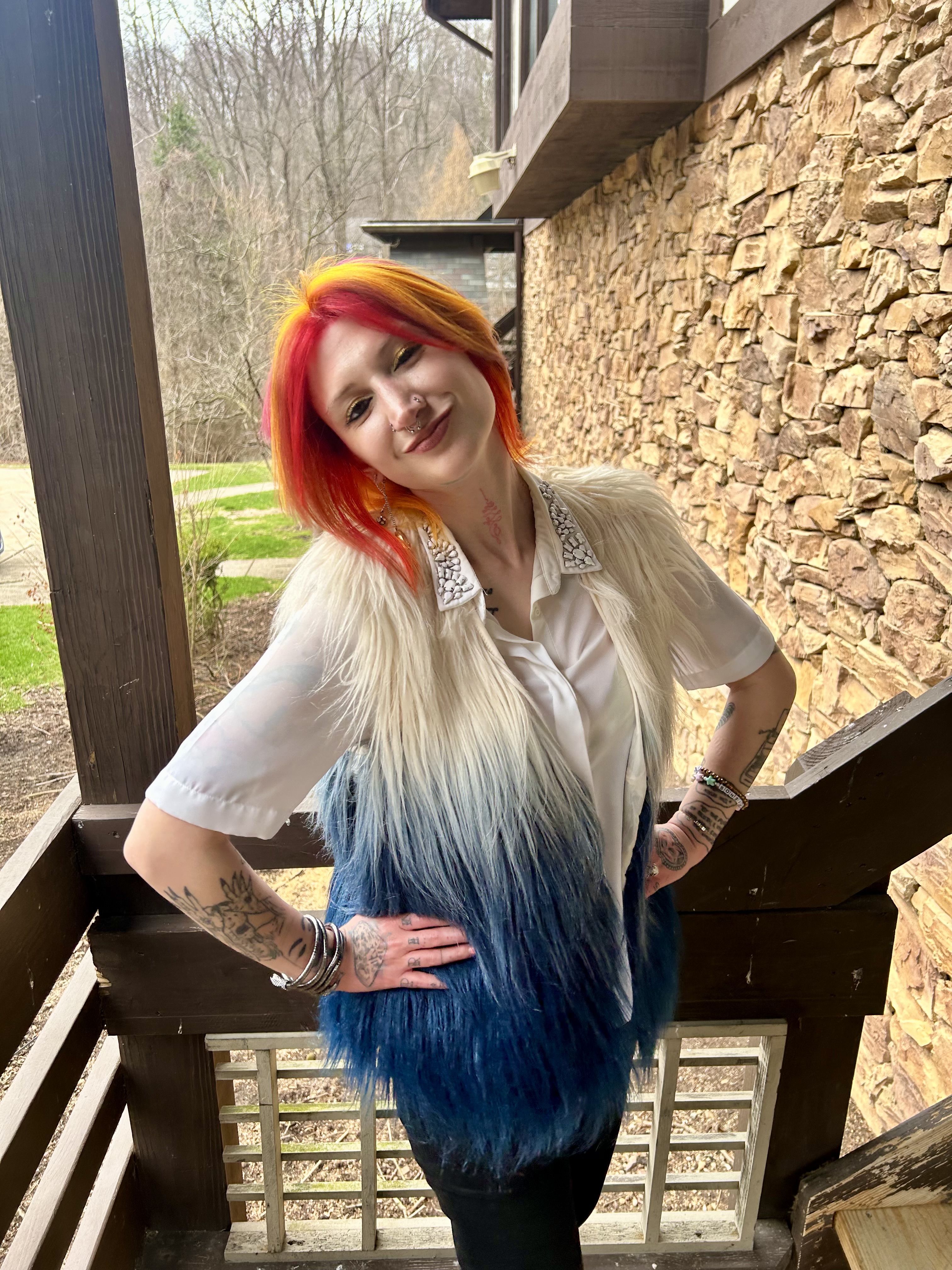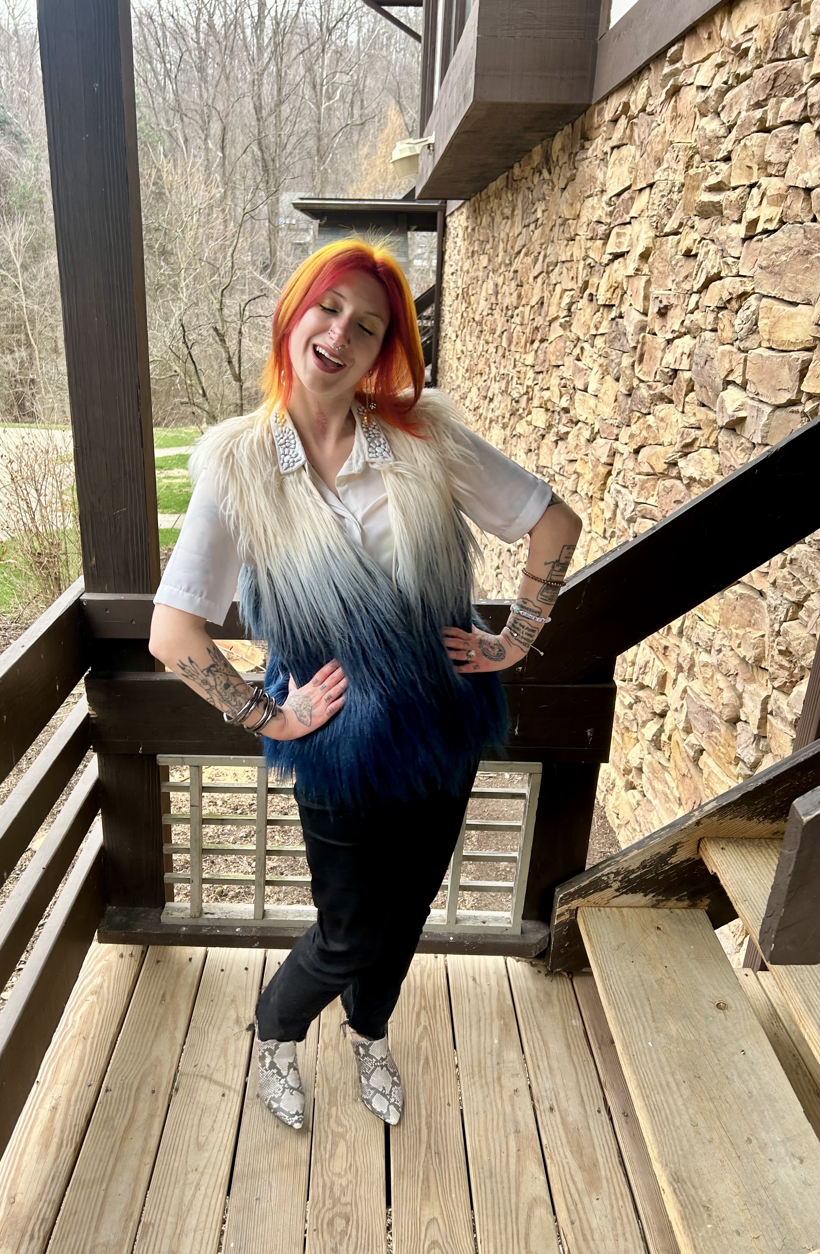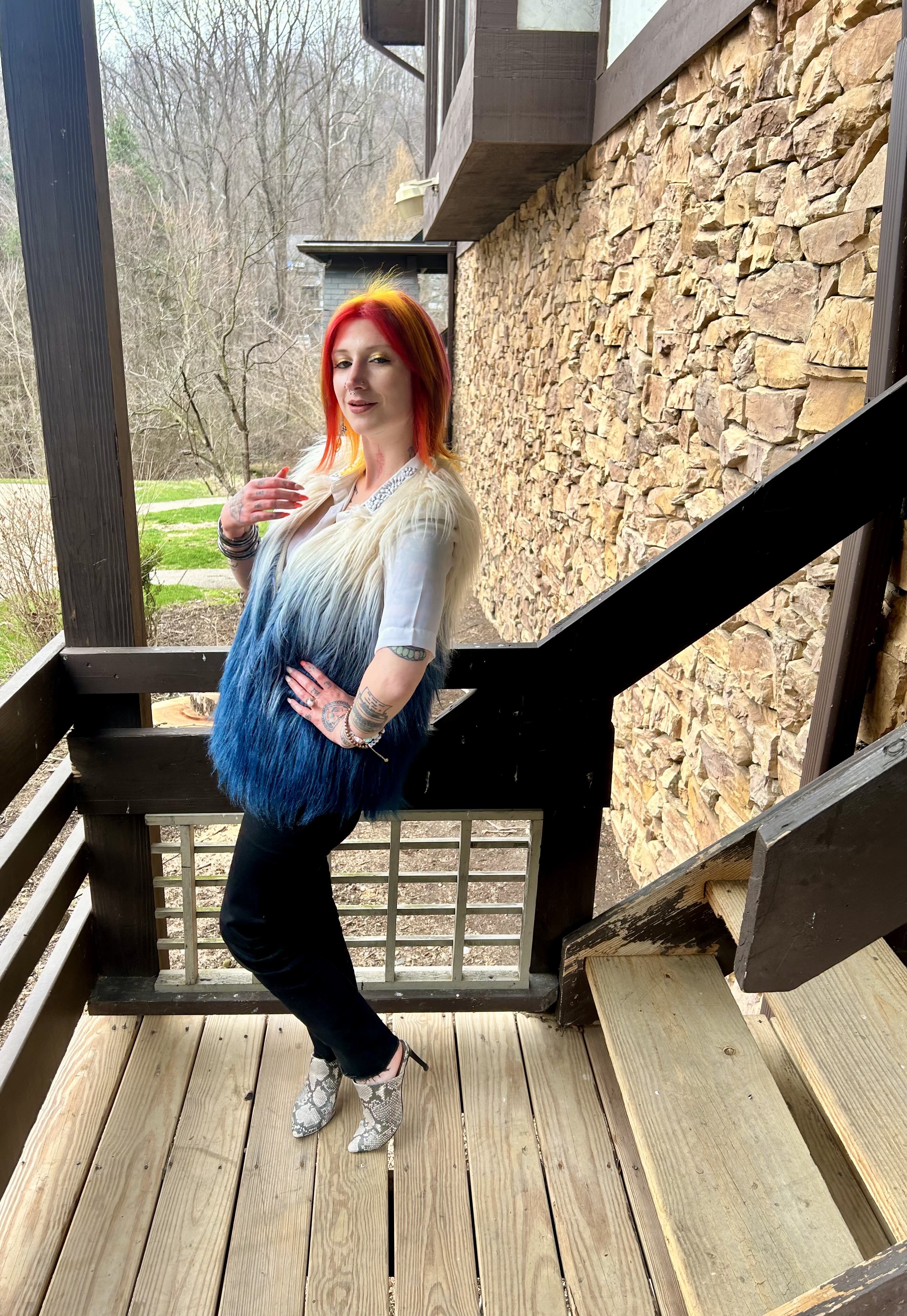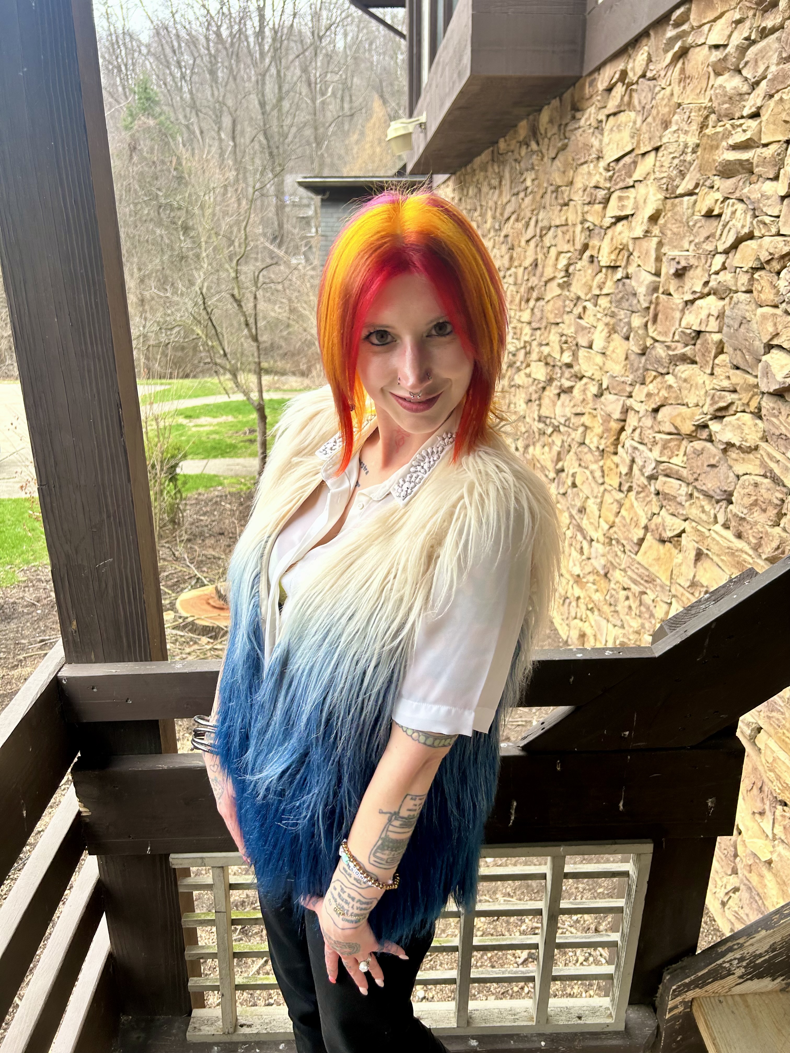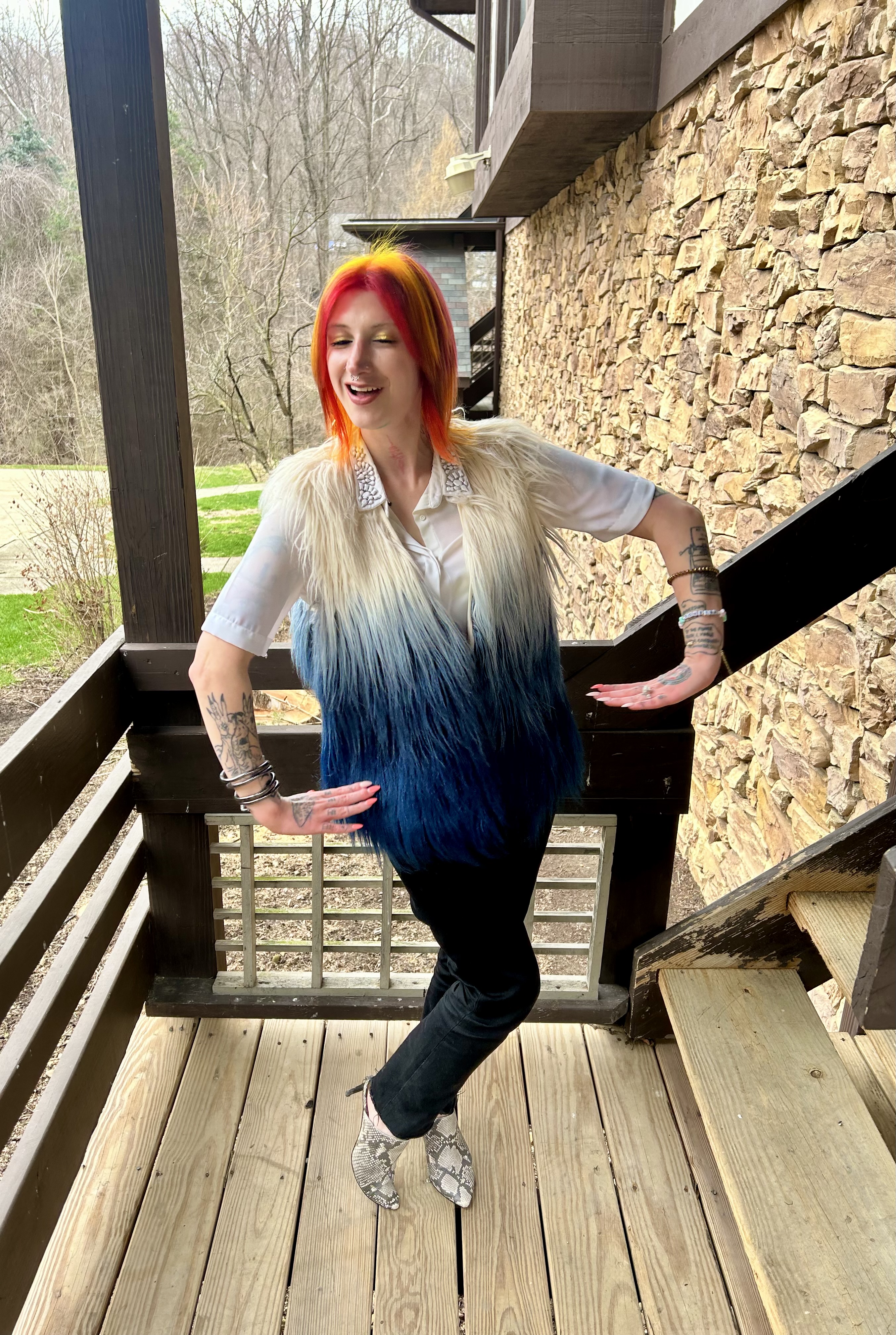 Hello everyone and welcome to the Blooper Reel from my Faux Fur Fierce OOTD! These pictures were taken as soon as I returned home from getting my hair done and I am SO in love with the results. I always say that every time my stylist does my hair is my favorite but I honestly think this Spring Sunset palette takes the cake. It is just so good and I legit will never be over it. We like to change up my hair at every appointment but these new colors might have to stick around for a while because I can’t get enough! Unlike my fabulous new do, these yikes shots leave a lot to be desired lol check it out: