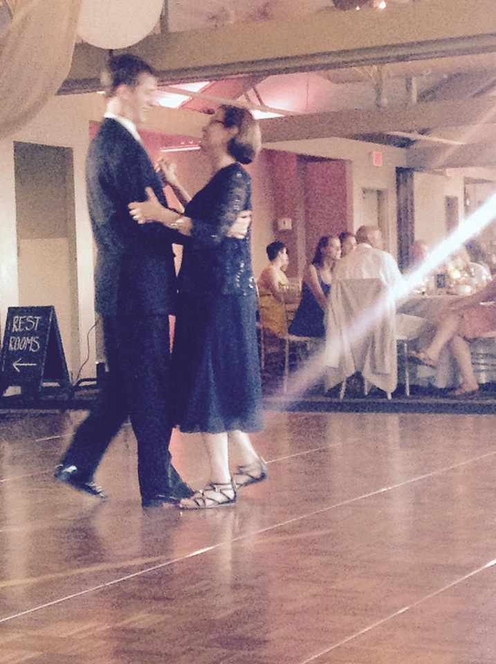 While the bridal party continued their photo shoot throughout the campus, my parents, Kristen, and I returned to our hotel to prepare for the wedding reception. Makeup was touched up, hair was straightened, deodorant was applied and then we were off to the country club where the reception was held. The open bar cocktail hour began at five and best believe that Kristen and I got turnt right from the get go. By the time dinner was served around six thirty, I was already five glasses of moscato in and feeling wonderful. The vegetarian entree for dinner was excellent, it was a pasta primavera and my only regret is that I didn’t eat more! After dinner, Megan’s dad and my mom gave a toast and then it was time for the father/daughter and mother/son dance. My mom and Peter danced to the best of their ability and it was actually really good! Take a look at some pics of the mother/son dance and the blushing bride and groom: